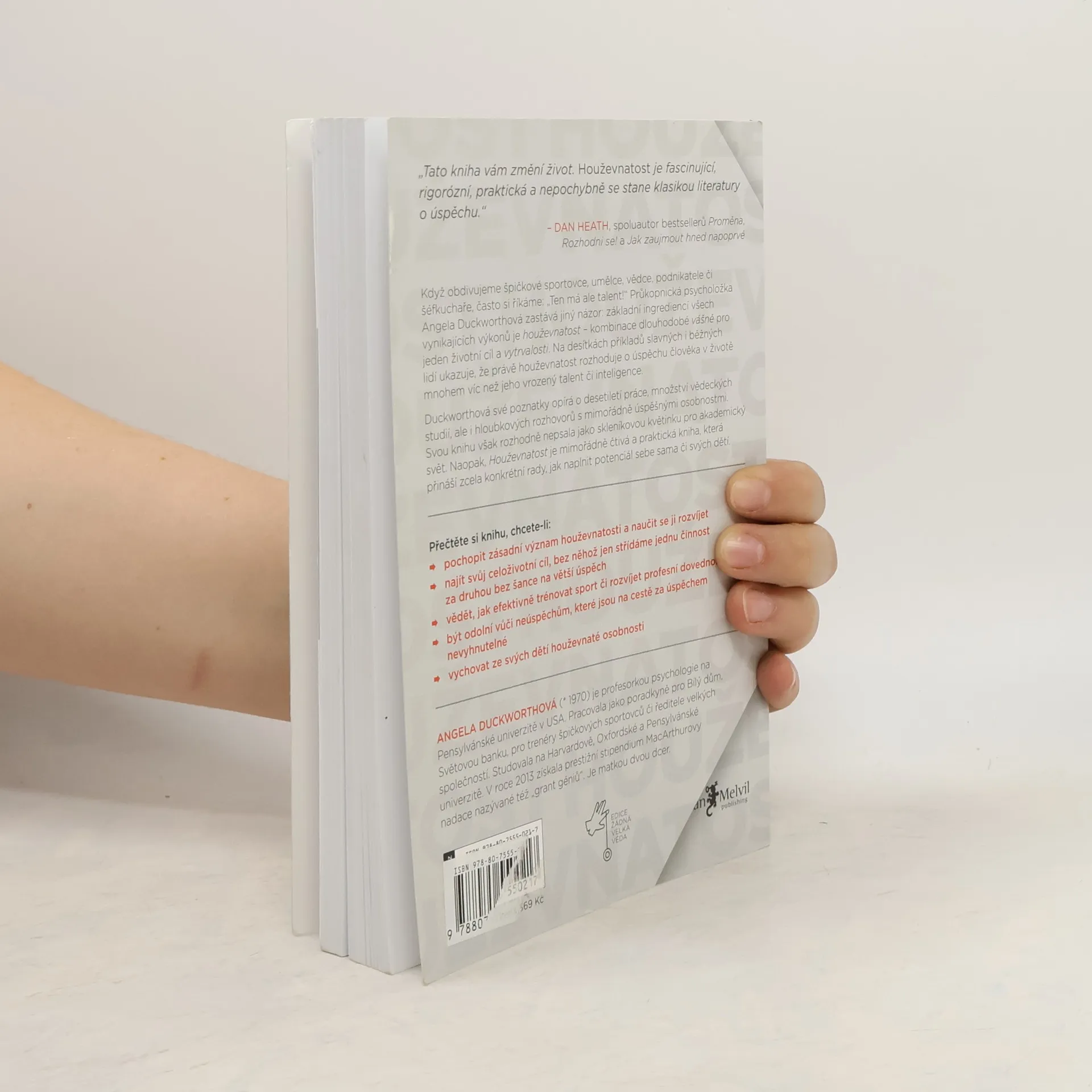 Chcete být úspěšní, ale zároveň chápete, že na vrchol žádné zkratky nevedou? Pak právě v odbornou veřejností i čtenáři oceňované Houževnatosti najdete ideálního průvodce, jak díky kombinaci vytrvalosti a vášně dosáhnout svého cíle. Když obdivujeme špičkové sportovce, umělce, vědce, podnikatele či šéfkuchaře, často si říkáme: „Ten má ale talent!“ Průkopnická psycholožka Angela Duckworthová zastává jiný názor: základní ingrediencí všech vynikajících výkonů je houževnatost – kombinace dlouhodobé vášně pro jeden životní cíl a vytrvalosti. Na desítkách příkladů slavných i běžných lidí ukazuje, že právě houževnatost rozhoduje o úspěchu člověka v životě mnohem víc než jeho vrozený talent či inteligence. Duckworthová své poznatky opírá o desetiletí práce, množství vědec-kých studií, ale i hloubkových rozhovorů s mimořádně úspěšnými osobnostmi. Svou knihu však rozhodně nepsala jako skleníkovou květinku pro akademický svět. Naopak, Houževnatost je mimořádně čtivá a praktická kniha, která přináší zcela konkrétní rady, jak naplnit potenciál sebe sama či svých dětí.