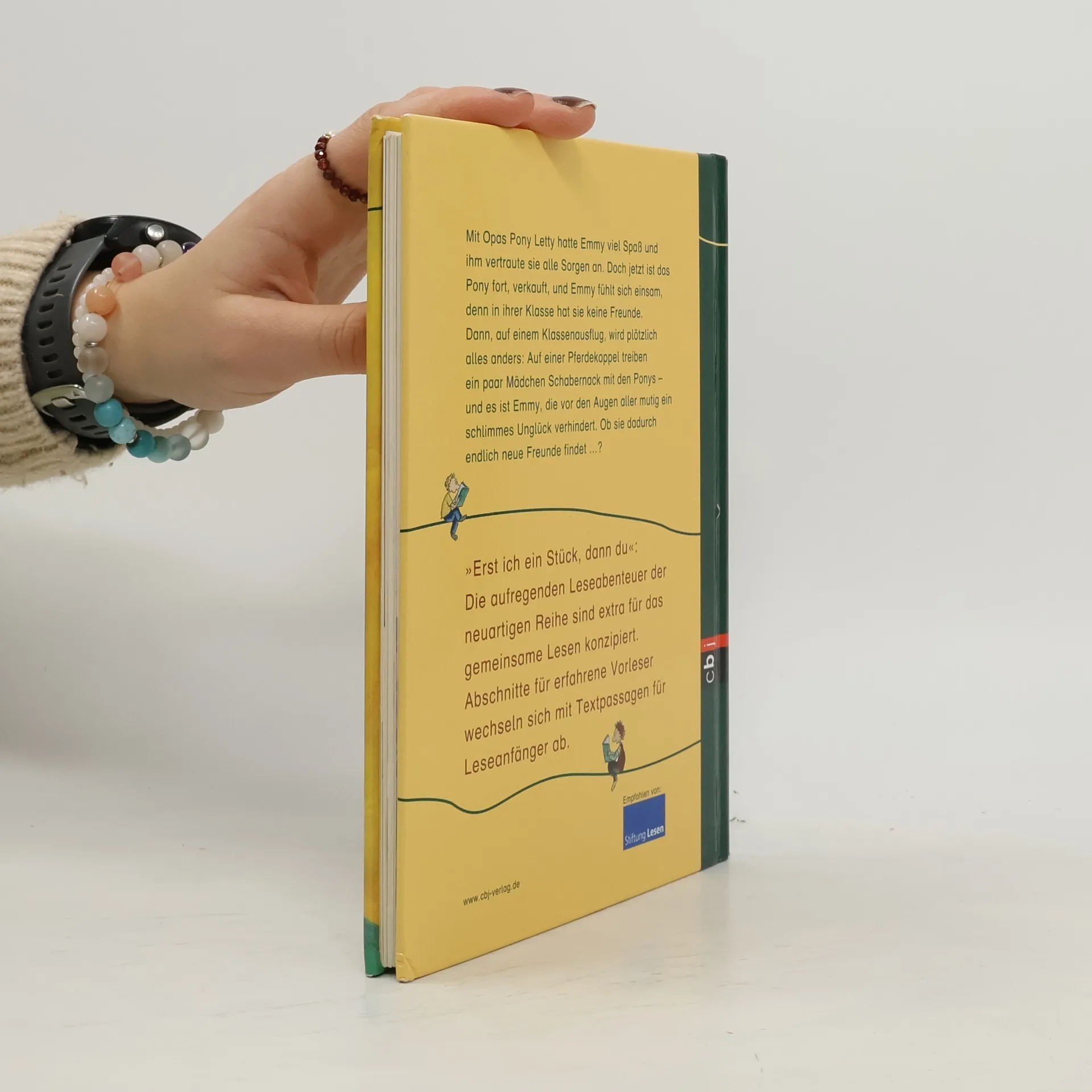Das neuartige Buchkonzept schließt die Lücke zwischen Vorlesebuch und Erstlesebuch. Emmy hatte viel Spaß mit ihrem Pony Letty, doch als es verkauft wird, fühlt sie sich einsam, da sie in ihrer Klasse keine Freunde hat. Dies ändert sich während eines Klassenausflugs, als Emmy mutig eingreift, um ein schlimmes Ereignis mit den Ponys zu verhindern. Plötzlich sind die anderen Kinder begeistert von ihr, und Emmy bemerkt, dass eines der Ponys Letty verblüffend ähnlich sieht. Das Konzept des gemeinsamen Lesens wird in vielen Familien praktiziert: „Lass uns gemeinsam lesen. Erst ich ein Stück, dann du, wir wechseln uns ab.“ Die Buchreihe „Erst ich ein Stück, dann du“ ist speziell für das gemeinsame Lesen konzipiert und richtet sich an Leseanfänger sowie erfahrene Leser. Diese Reihe bietet erstmals in Deutschland ein Buchformat, das die Lücke zwischen klassischen Vorlesebüchern und Erstlesebüchern schließt. Die Stiftung Lesen empfiehlt die Reihe, da die Interaktion zwischen erfahrenen und neuen Lesern sowie der Wechsel zwischen Selbstlesen und Vorlesen wichtige motivierende Elemente für Leseanfänger sind. Jeder Band bietet längere, komplexere Textpassagen für erfahrene Vorleser und kurze, einfache Abschnitte in großer Fibelschrift für Leseanfänger, ergänzt durch großzügige, farbige Illustrationen von bekannten Illustratoren.