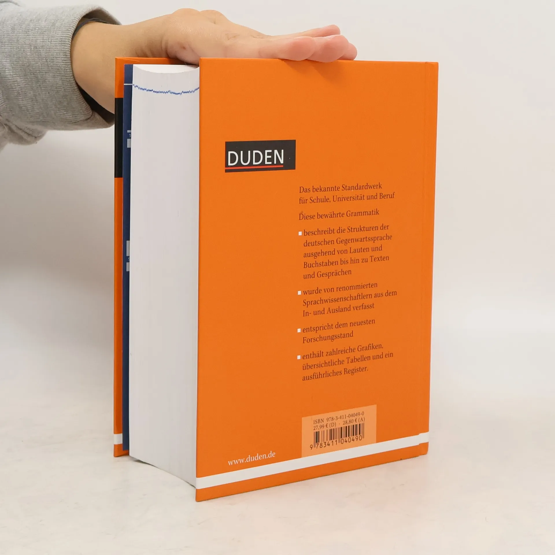 „Duden - Die Grammatik“ ist eine wissenschaftlich exakte und umfassende Beschreibung des Aufbaus der deutschen Sprache vom Laut über das Wort und den Satz bis hin zum Text. Der Band beschreibt als erste Gebrauchsgrammatik auch systematisch die Eigenschaften gesprochener Sprache. Die Grammatik umfasst die Teile „Phonem und Graphem“, „Intonation“, „Das Wort“ (Was ist ein Wort? Wortarten, Wortbildung), „Der Satz“, „Der Text“ und „Die gesprochene Sprache“. Ein Fachwortverzeichnis sowie Vertonungen und Hörbeispiele finden Sie unter www. duden. de/grammatik.