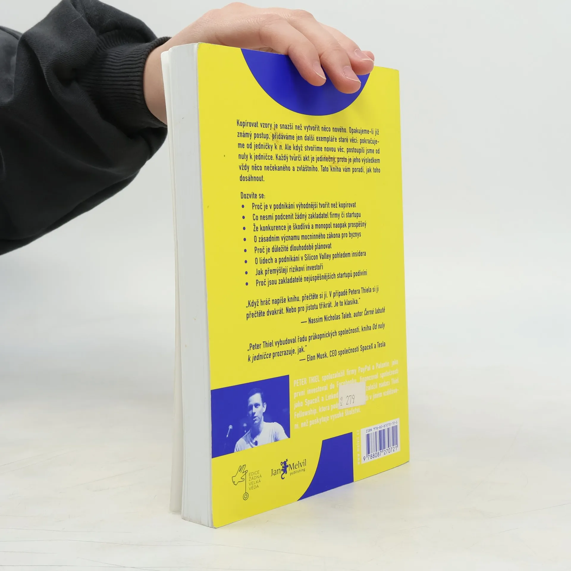 Kniha Od nuly k jedničce je plná jedinečných a praktických postřehů geniálního investora rizikového kapitálu Petera Thiela. Popisuje v ní logiku vzniku firmy s jasnou vizí a potenciálem ovlivnit svět. Thiel byl jedním z prvních investorů do společností PayPal, LinkedIn a Facebook a oprávněně se řadí po bok mnoha respektovaných myšlenkových vůdců. Autor otevřeně propaguje monopol a zavrhuje konkurenční soutěž jako po-tenciálně škodlivou pro zdravý rozvoj firmy. Nahlas propaguje svůj rebelský postoj, že nemá cenu snažit se vyhrát v bezohledném souboji dnešního trhu. Skuteční šampioni zítřka zcela uniknou svým konkurentům, protože jejich podnikání bude originální a nenapodobitelné.