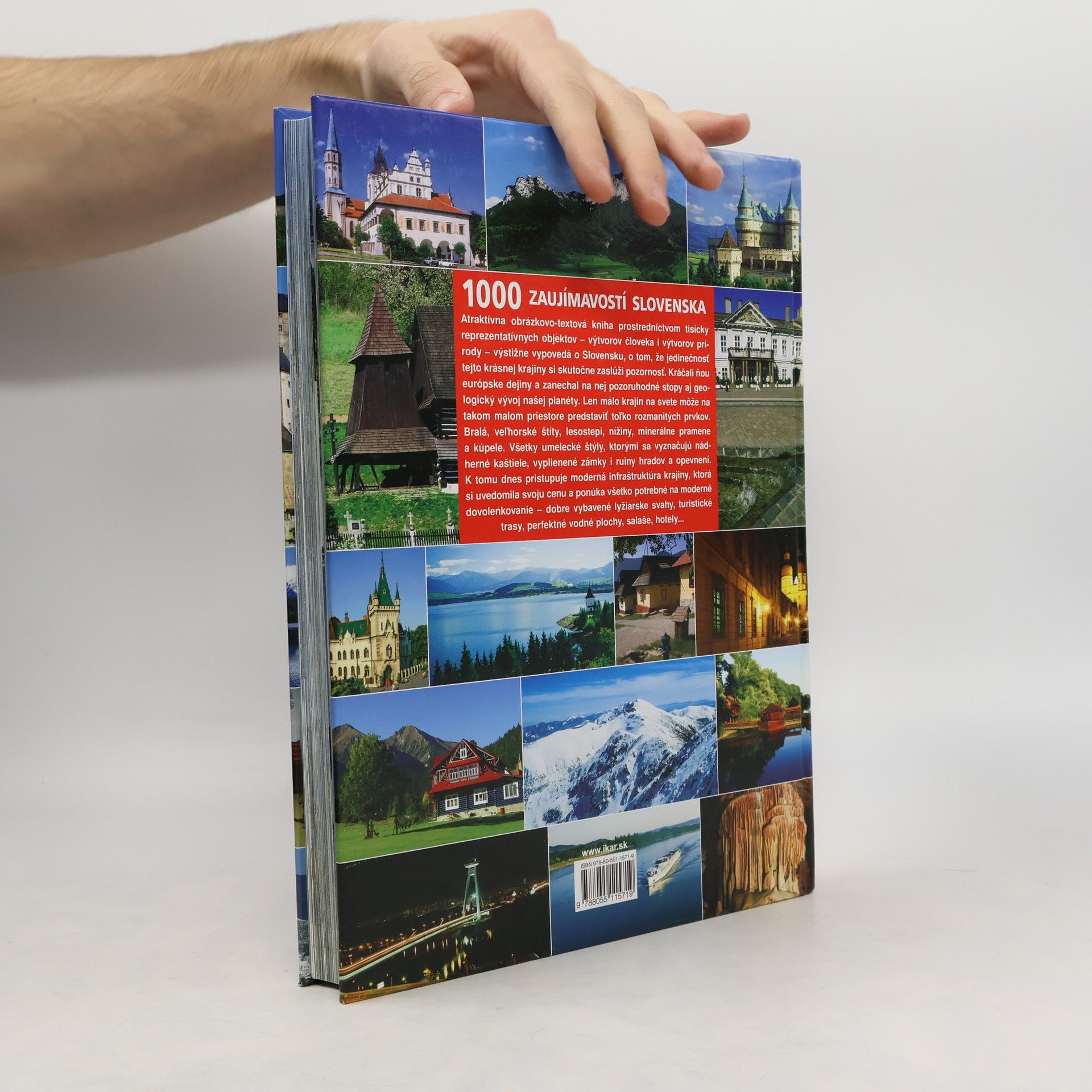 Atraktívna obrázkovo-textová kniha prostredníctvom tisícky reprezentatívnych objektov - výtvorov človeka i výtvorov prírody - výstižne vypovedá o Slovensku, o tom, že jedinečnosť tejto krásnej krajiny si skutočne zaslúži pozornosť. Kráčali ňou európske dejiny a zanechal na nej pozoruhodné stopy aj geologický vývoj našej planéty. Len málo krajín na svete môže na takom malom priestore predstaviť toľko rozmanitých prvkov. Bralá, veľhorské štíty, lesostepi, nížiny, minerálne pramene a kúpele. Všetky umelecké štýly, ktorými sa vyznačujú nádherné kaštiele, vyplienené zámky i ruiny hradov a opevnení. K tomu dnes pristupuje moderná infraštruktúra krajiny, ktorá si uvedomila svoju cenu a ponúka všetko potrebné na moderné dovolenkovanie - dobre vybavené lyžiarske svahy, turistické trasy, perfektné vodné plochy, salaše, hotely...
