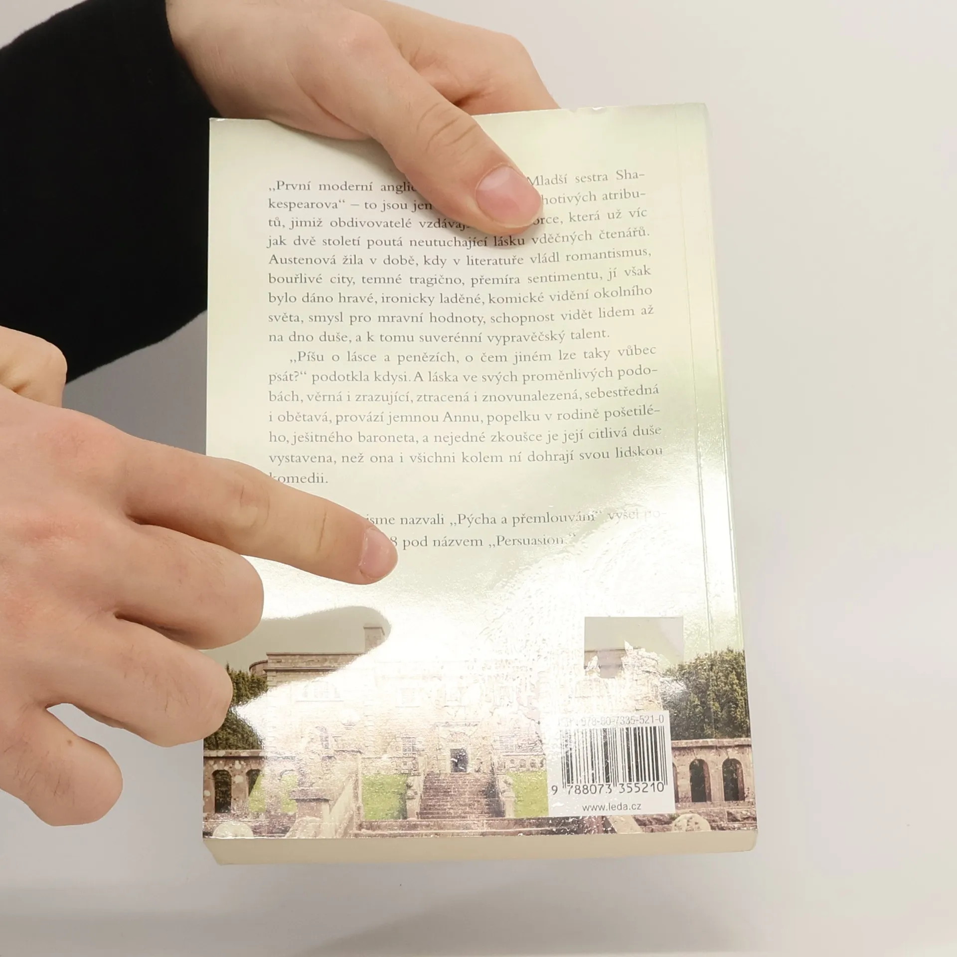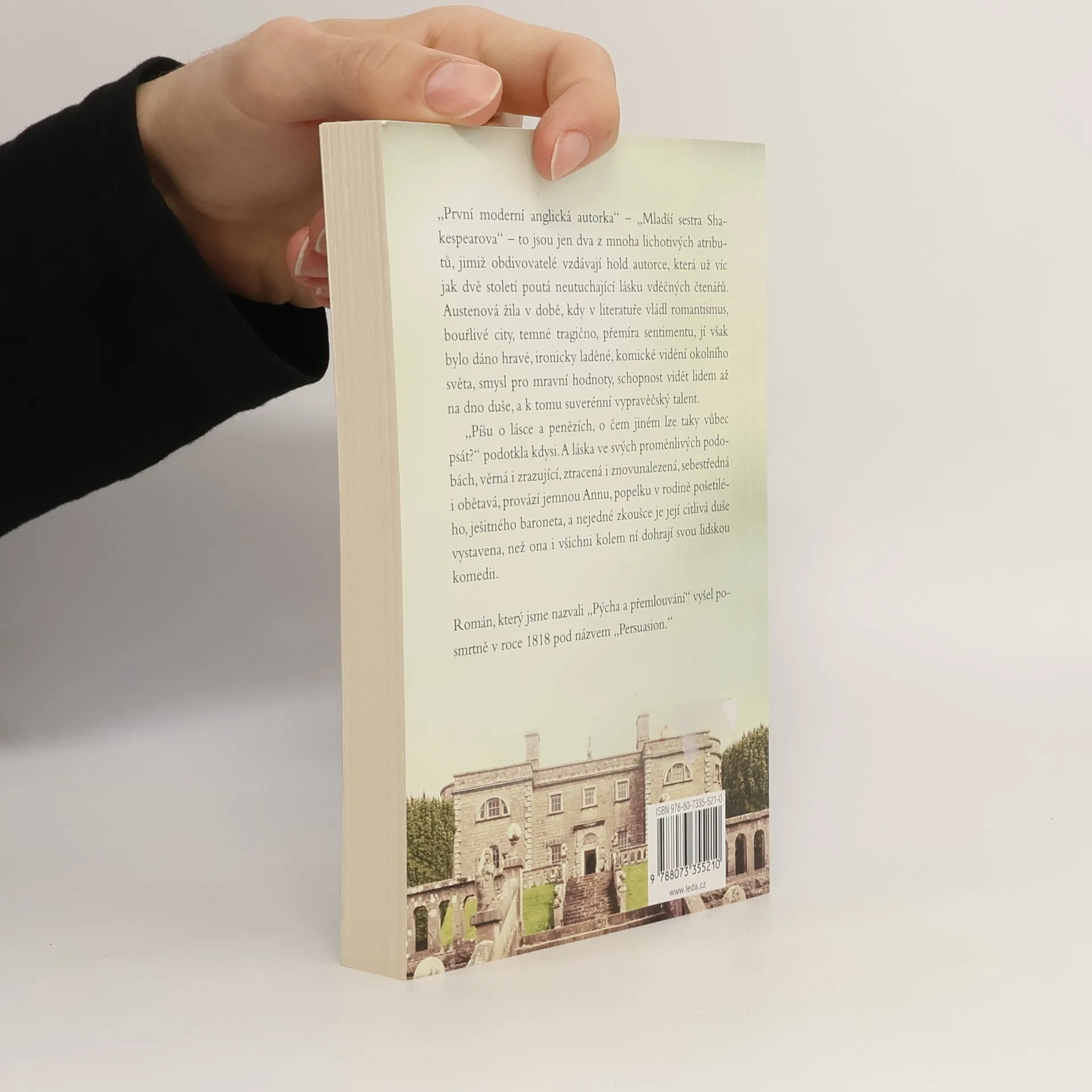 „První moderní anglická autorka“, „mladší sestra Shakespearova“ to jsou jen dva z mnoha lichotivých atributů, jimiž obdivovatelé vzdávají hold autorce, která už víc jak dvě století poutá neutuchající lásku vděčných čtenářů. Austenová žila v době, kdy v literatuře vládl romantismus, bouřlivé city, temné tragično, přemíra sentimentu, jí však bylo dáno hravé, ironicky laděné, komické vidění okolního světa, smysl pro mravní hodnoty, schopnost vidět lidem až na dno duše, a k tomu suverénní vypravěčský talent. „Píšu o lásce a penězích, o čem jiném lze taky vůbec psát?“ podotkla kdysi. A láska ve svých proměnlivých podobách, věrná i zrazující, ztracená i znovunalezená, sebestředná i obětavá, provází jemnou Annu, popelku v rodině pošetilého, ješitného baroneta, a nejedné zkoušce je její citlivá duše vystavena, než ona i všichni kolem ní dohrají svou lidskou komedii. Román, který jsme nazvali Pýcha a přemlouvání, vyšel posmrtně v roce 1818 pod názvem Persuasion.