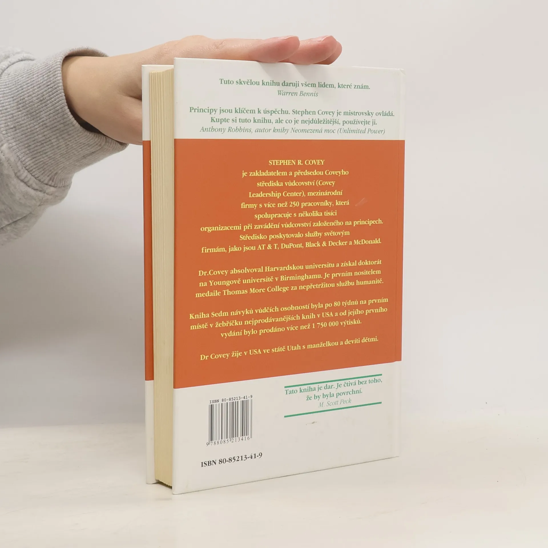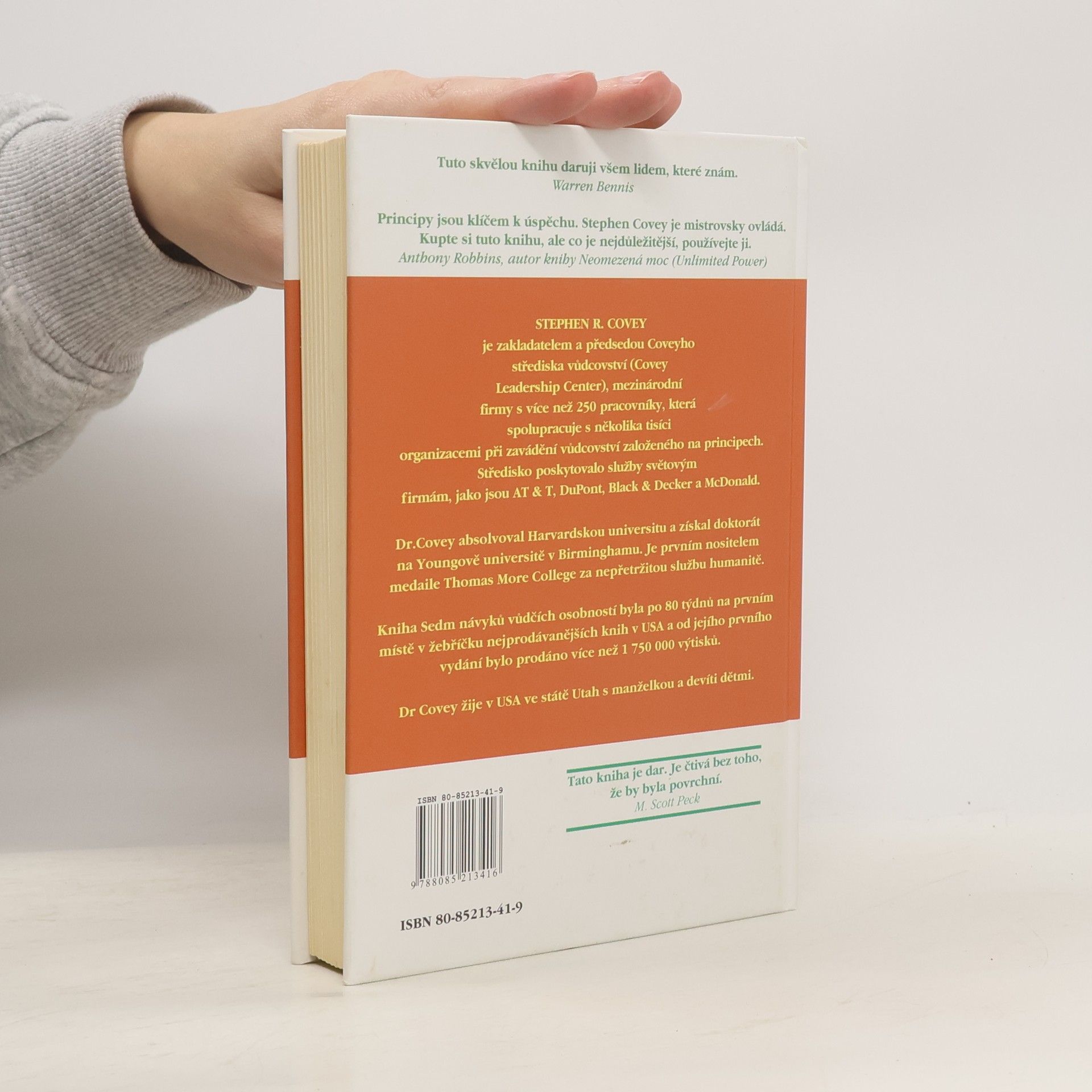 Dvěma slovy: trvalý bestseller - tato kniha byla přeložena do zhruba třiceti jazyků a prodalo se jí přes patnáct miliónů výtisků. Covey shrnuje a do sedmi návyků strukturalizuje moudrost dvou tisíc let. Inspiruje se křesťanstvím, judaismem, taoismem, budhismem, managementem a leadershipem. Nepíše ani tak o praktikách a technikách, jako o přirozených přírodních principech. Ty, na rozdíl od přírodních zákonů, respektovat můžeme, ale nemusíme. V případě, že se rozhodneme tak neučinit, nedivme se, jaké že to plody našeho života sklízíme. Kniha je určena pro všechny, kteří chtějí zlepšit kvalitu svého života. Pro leadery je tato kniha zcela zásadní.... celý text
