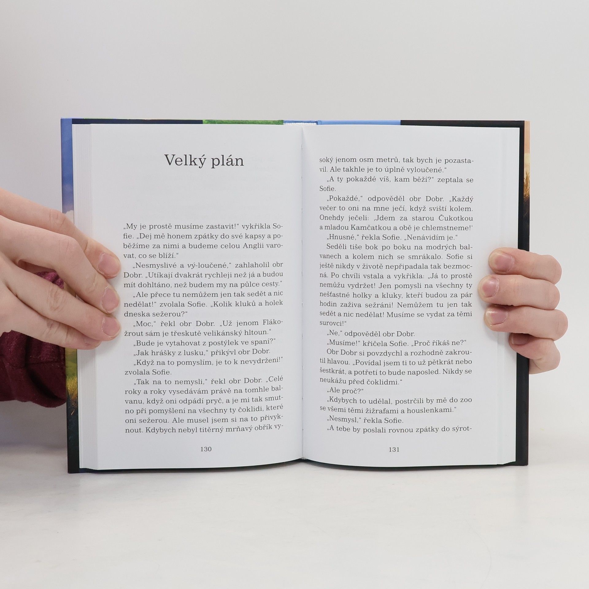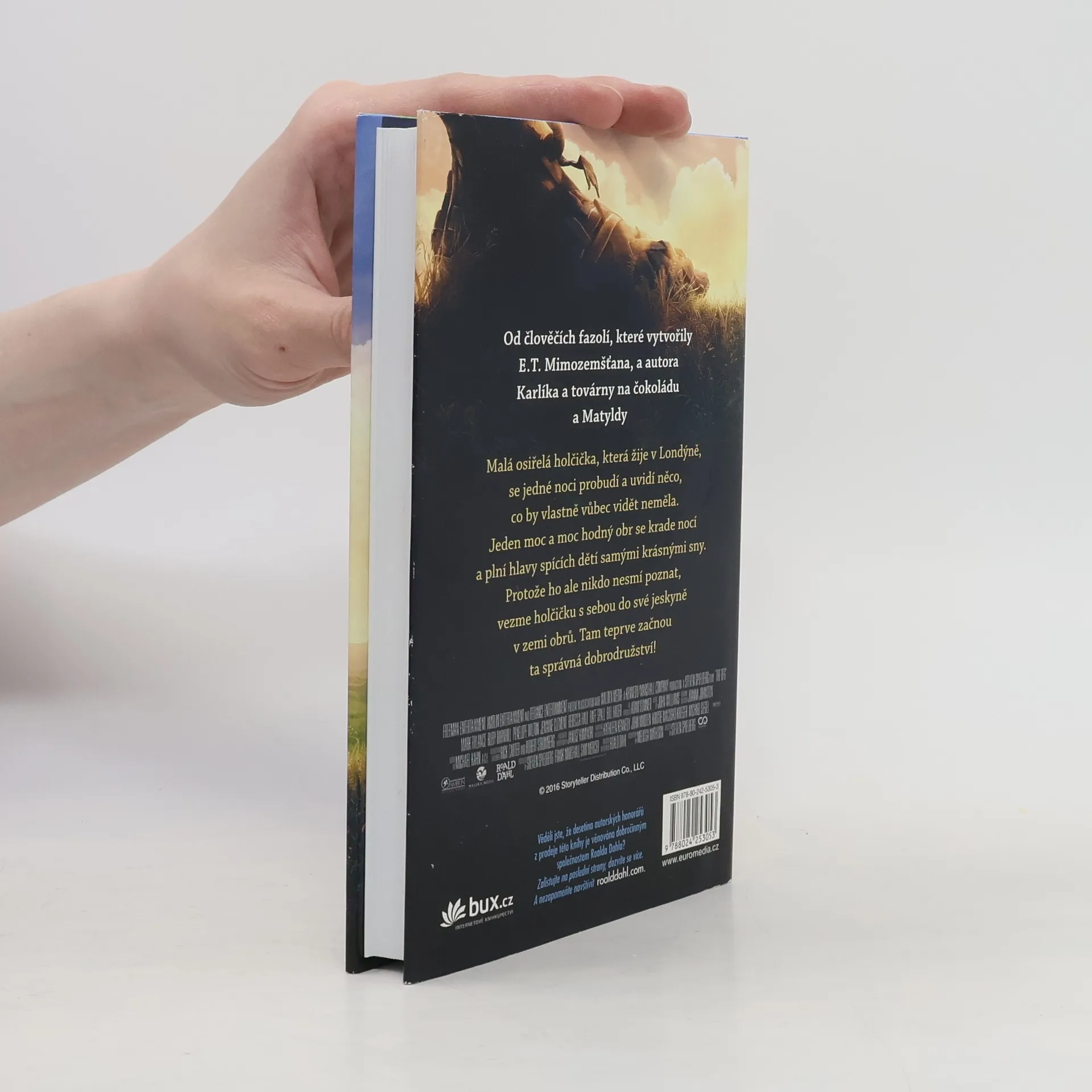 Malá osiřelá holčička, která žije v Londýně, se jedné noci probudí a uvidí něco, co by vlastně vůbec vidět neměla. Jeden moc a moc hodný obr se krade nocí a plní hlavy spících dětí samými krásnými sny. Protože ho ale nikdo nesmí poznat, vezme holčičku s sebou do své jeskyně v zemi obrů. Tam teprve začnou ta správná dobrodružství! Knihu zfilmoval Steven Spielberg. Stejnojmenný film přijde do českých kin 30.6.2016.