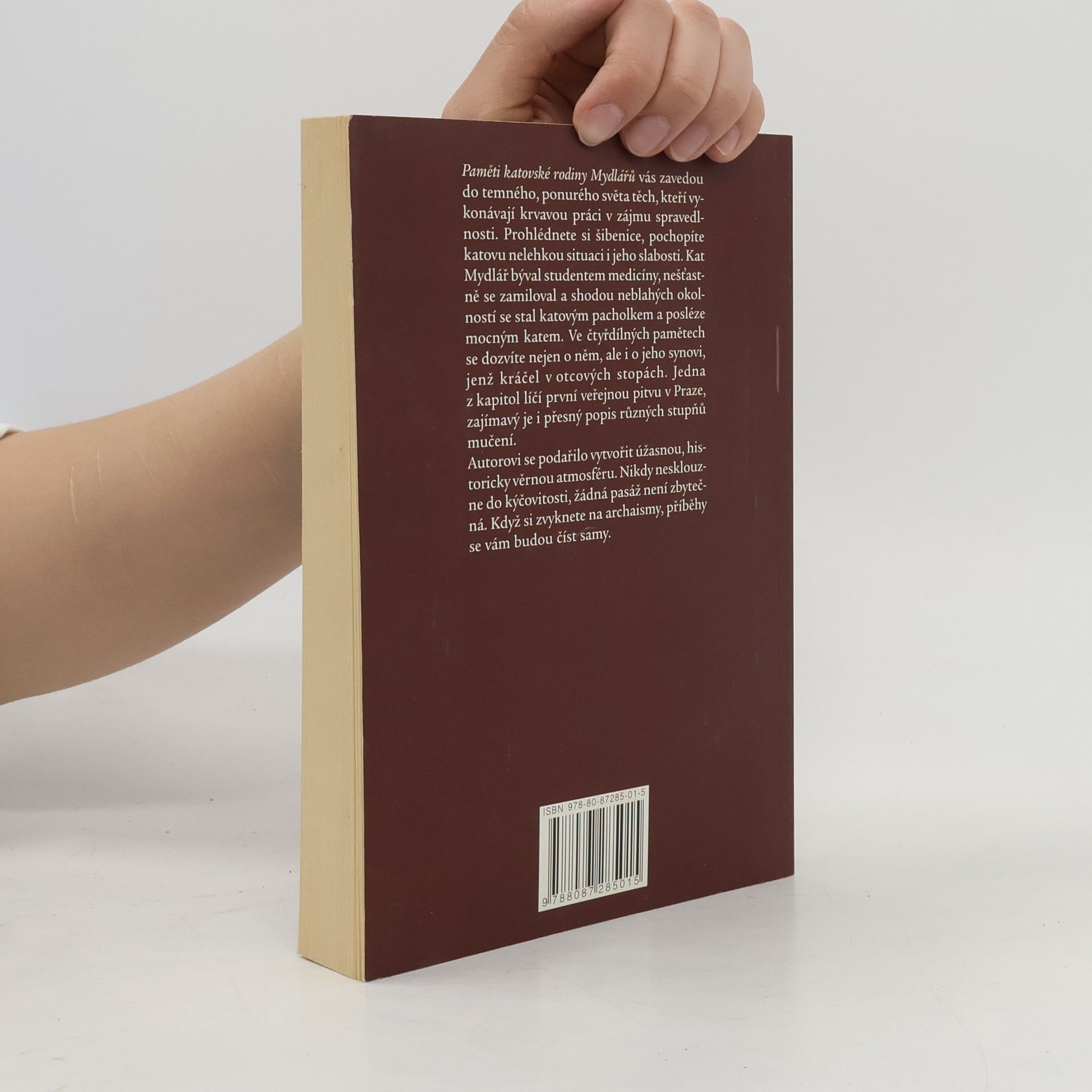 První svazek čtyřsvazkového vydání Pamětí katovské rodiny Mydlářů v Praze. Ocitnete se v temném světě těch, kteří dělají krvavou práci v zájmu spravedlnosti. Nic vám nezůstane utajeno. Prohlédnete si šibenice, pochopíte katovy slabosti a (ne)budete litovat jeho oběti. Paměti kata Mydláře nejsou obyčejnou knihou. Archaická čeština způsobí, že váš propad hrdlem dějin bude o to působivější. Kati vždy patřili k rozporuplným, opomíjeným osobnostem české společnosti. V zájmu veřejného pořádku občas zakročil a posekal pár hlav podvratných živlů. Knížka barvitě popisuje nejen tuto katovu každodenní rutinu (mučit, sekat, popravit), ale líčí životní příběhy dvou katů. Autorovi se podařilo vytvořit úžasnou, historicky věrnou atmosféru. Nikdy nesklouzne do kýčovitosti, žádná pasáž knihy není zbytečná. Série knih, která je působivá, důvěryhodná, poučná