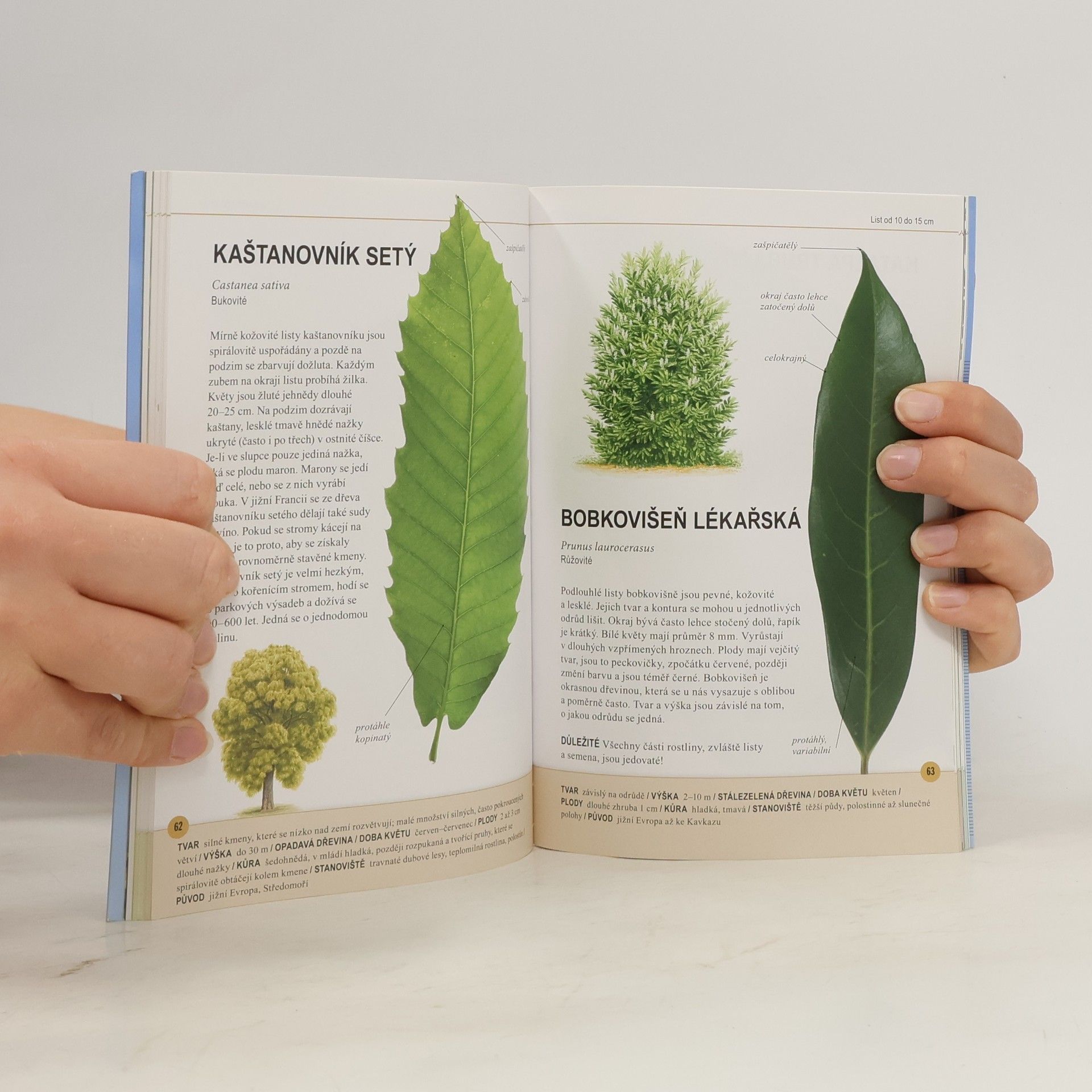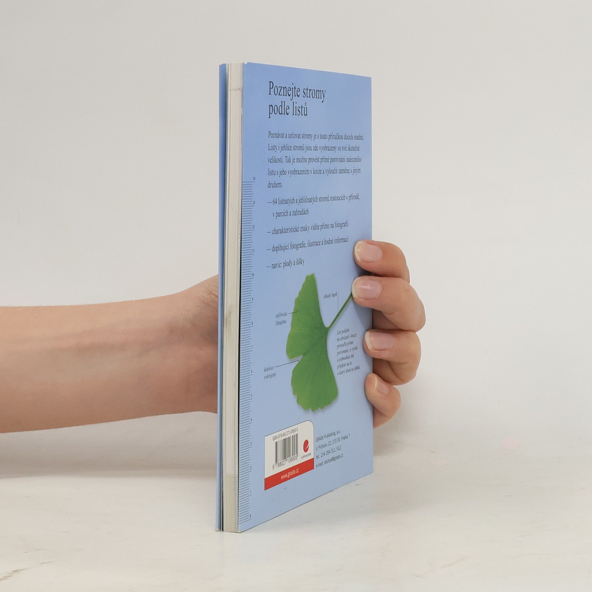 Poznávat a určovat stromy je s touto příručkou docela snadné. Listy i jehlice stromů jsou zde vyobrazeny ve skutečné velikosti, takže stačí list položit na obrázek v knize, porovnat, a rychle a jednoduše přijdete na to, o který druh se jedná. Celkem zde najdete 64 listnatých a jehličnatých stromů rostoucích v přírodě, ale i v parcích a zahradách. U každého stromu je fotografie listu (či jehlic), kresba tvaru koruny a potřebné informaci pro to, abyste strom mohli určit. Na klopách knihy jsou navíc podrobnosti o plodech a šiškách.
