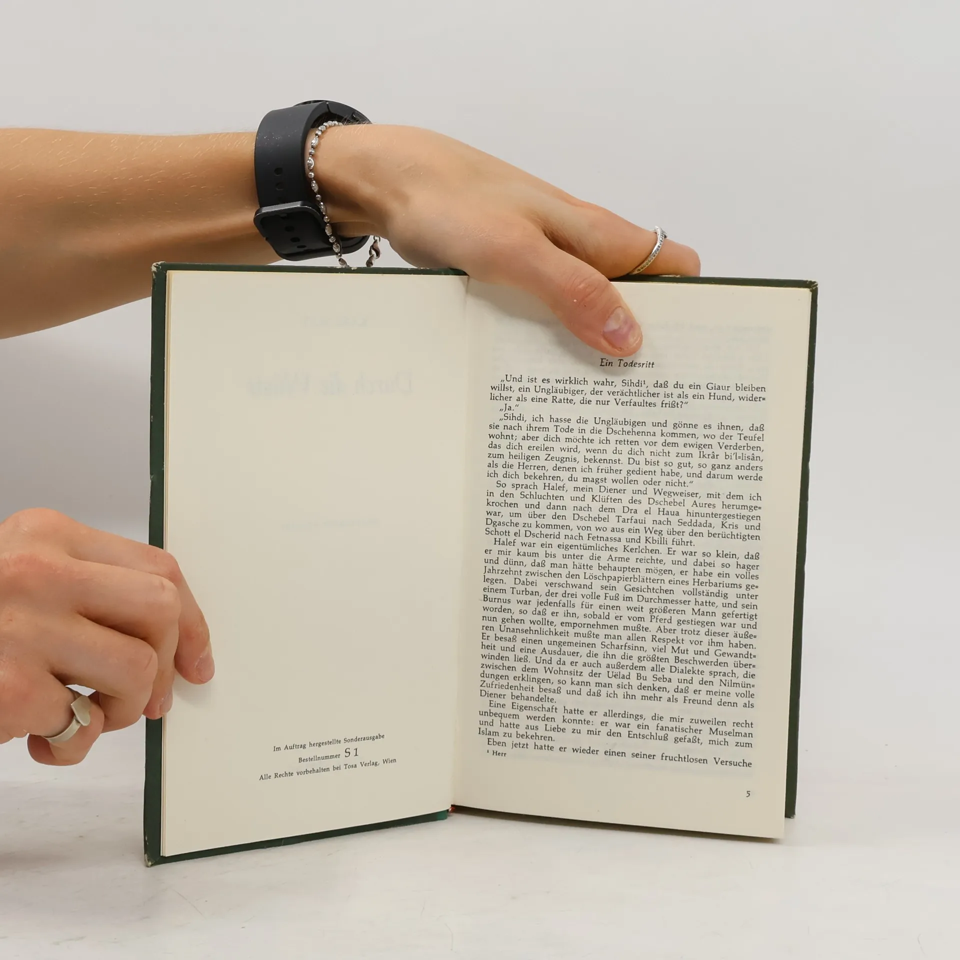 Durch die Wüste reiten Kara Ben Nemsi und Hadschi Halef Omar, sein treuer Gefährte. Der Fund einer Leiche bei den Salzseen Nordafrikas löst ein faszinierendes Abenteuer aus, dessen Folgen den Leser sechs Bände lang in Atem halten. Schon zu Beginn erschließt sich die ganze Buntheit der orientalischen Welt.