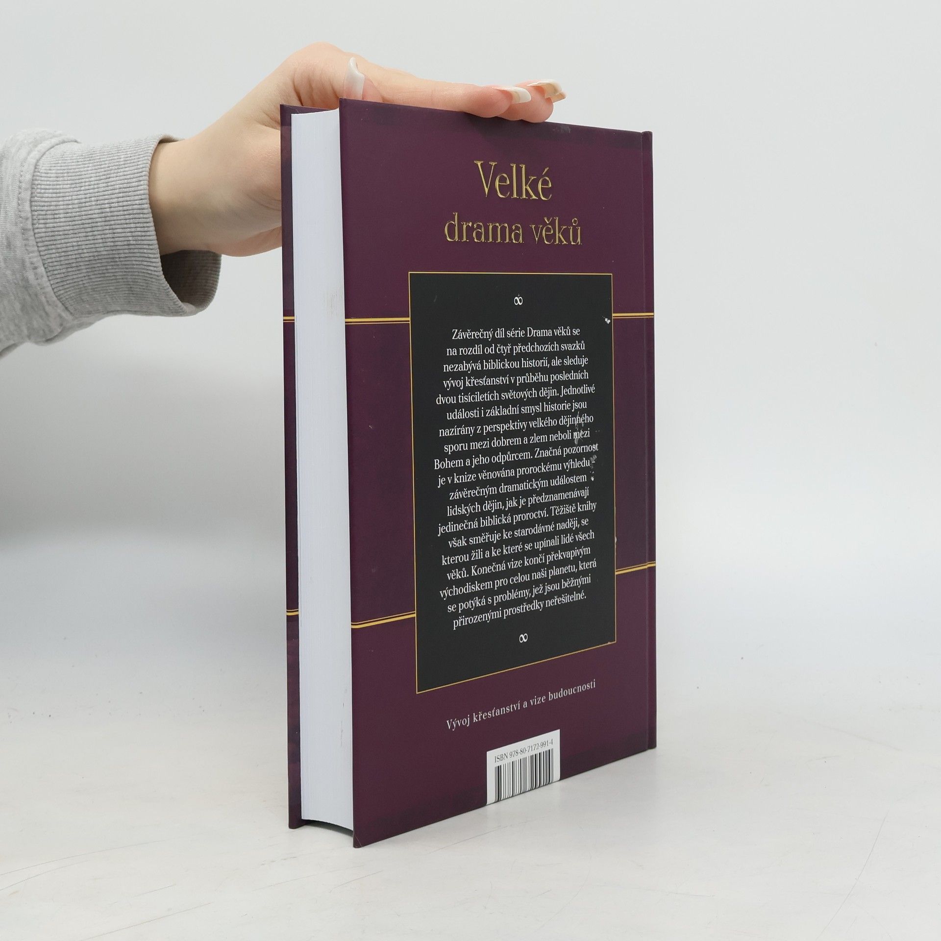 Závěrečný díl pětisvazkové série knih „Drama věků“ od E. G. Whiteové se narozdíl od čtyř předchozích svazků nezabývá biblickou historií, ale sleduje vývoj křesťanství za posledních dva tisíce let. Jednotlivé události i základní smysl historie jsou nazírány z perspektivy „velkého dějinného sporu“ mezi dobrem a zlem neboli mezi Bohem a jeho odpůrcem. Dotisk v roce 2019.
