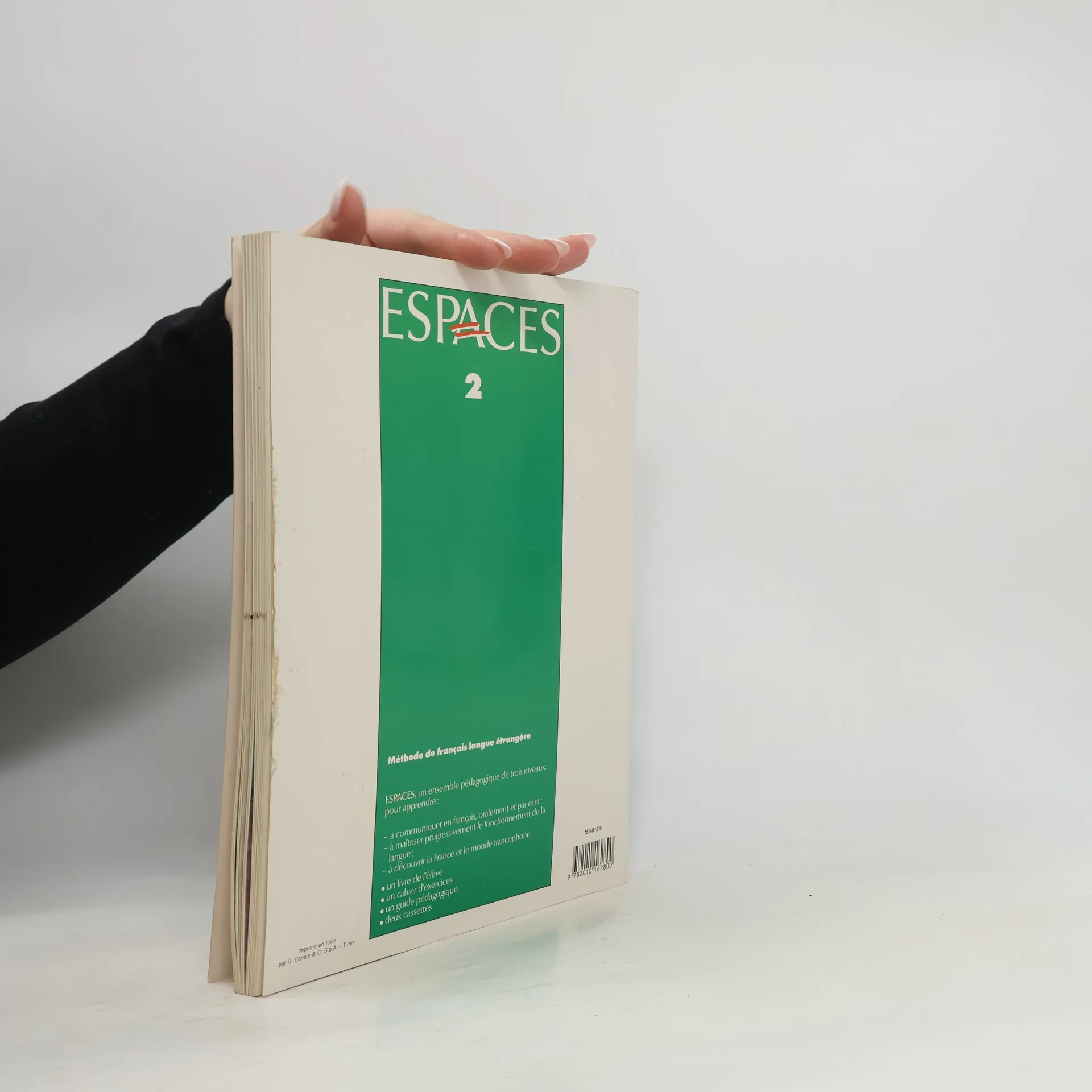 Espaces, un ensemble pédagogique de trois niveaux, pour apprendre : - à communiquer en français, oralement et par écrit ; - à maîtriser progressivement le fonctionnement de la langue ; - à découvrir la France et le monde francopone. . un livre de l'élève . un cahier d'exercices . un guide pédagogique . deux cassettes.