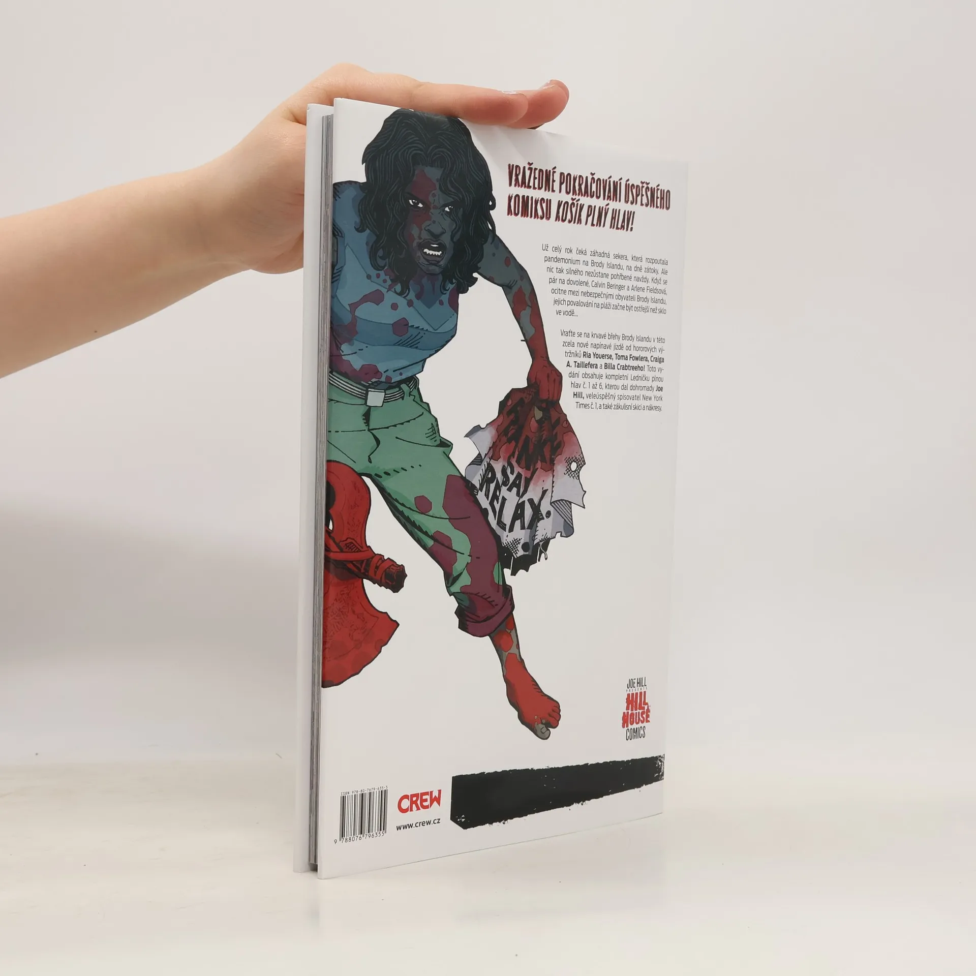 Vražedné pokračování úspěšného komiksu Košík plný hlav! Už celý rok čeká záhadná sekera, která rozpoutala pandemonium na Brody Islandu, na dně zátoky. Ale nic tak silného nezůstane pohřbené navždy. Když se pár na dovolené, Calvin Beringer a Arlene Fieldsová, ocitne mezi nebezpečnými obyvateli Brody Islandu, jejich povalování na pláži začne být ostřejší než sklo ve vodě… Vraťte se na krvavé břehy Brody Islandu v této zcela nové napínavé jízdě od hororových výtržníků Ria Youerse, Toma Fowlera, Craiga A. Taillefera a Billa Crabtreeho! Toho vydání obsahuje kompletní Ledničku plnou hlav č. 1 až 6, kterou dal dohromady Joe Hill, veleúspěšný spisovatel New York Times č. 1, a také zákulisní skici a nákresy.