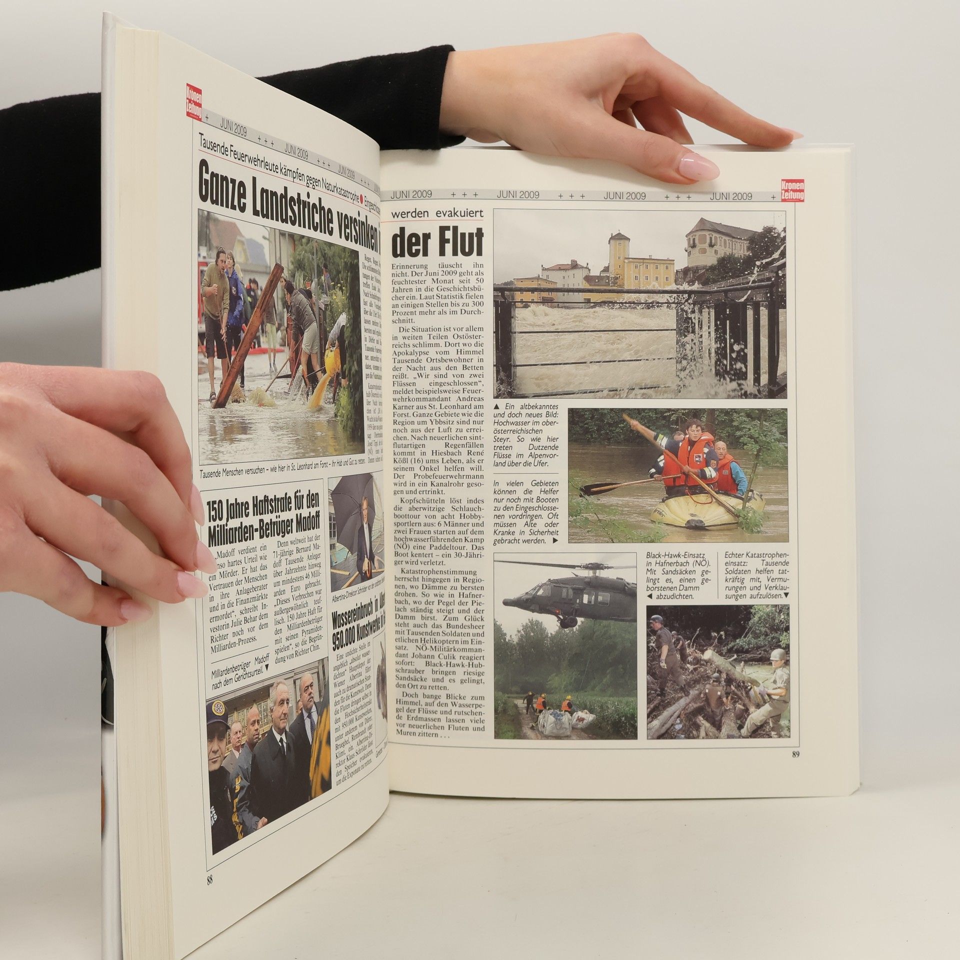 Die Wirtschaftskrise ist das Thema des Jahres 2009. Inmitten dieser globalen Sorge gilt der neue US-Präsident Barack Obama als der Hoffungsträger für die Welt. In Österreich wiederum sorgt der Jahrhundertprozess um den Inzest-Vater Josef Fritzl für weltweites Medieninteresse. Und natürlich bringt das neue 'Krone'-Schlagzeilenbuch auch alle amüsanten und pikanten 'Adabei'-Geschichten – von 'Mausi' Lugners notpeinlicher Schatzsuche im Dschungelcamp bis zum groß angekündigten Come-back des Popkönigs Michael Jackson. Alles in allem 150 spannende Seiten Zeitgeschichte mit den besten Fotos des Jahres.