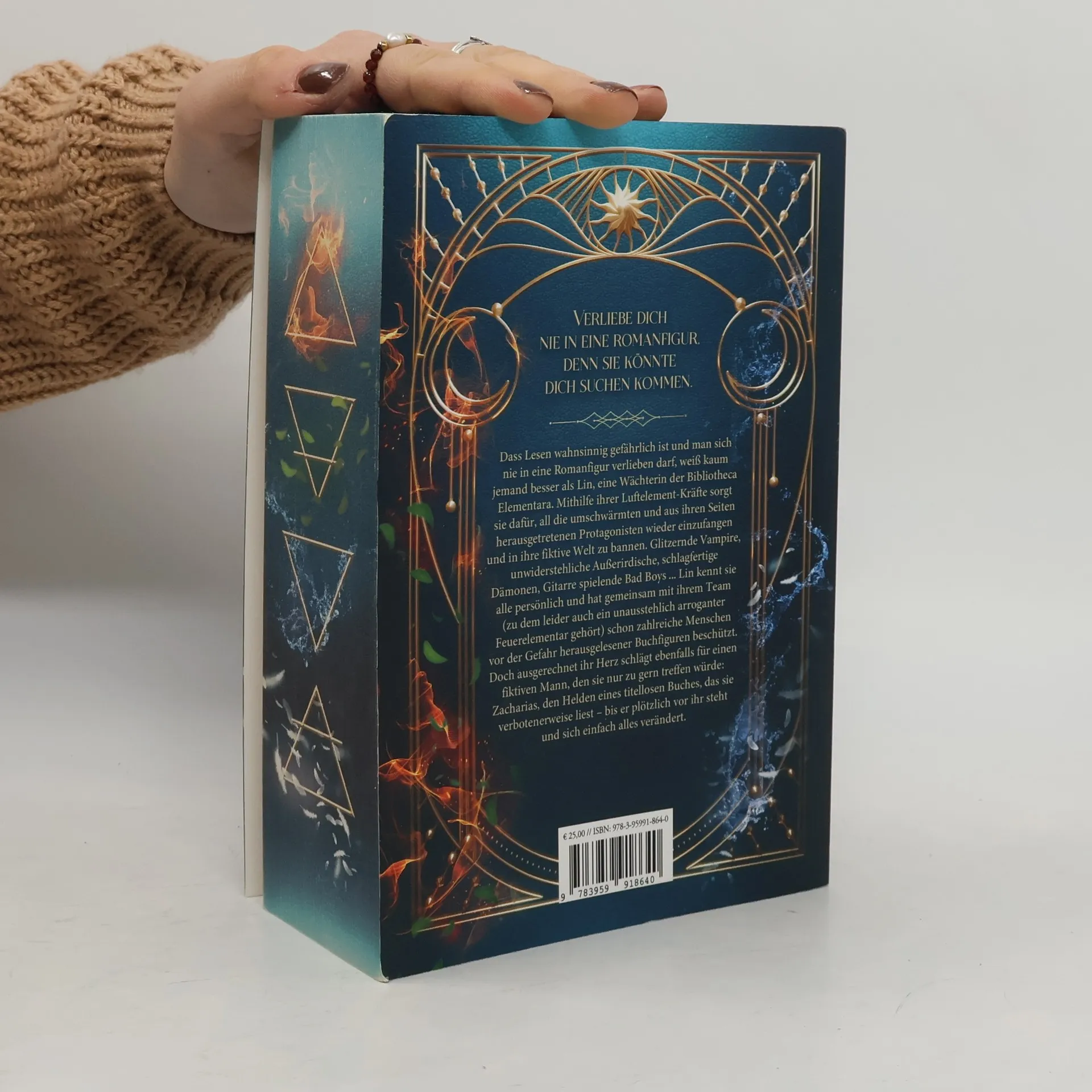 *Verliebe dich nie in eine Romanfigur, denn sie könnte dich suchen kommen.* Dass Lesen wahnsinnig gefährlich ist und man sich nie in eine Romanfigur verlieben darf, weiß kaum jemand besser als Lin, eine Wächterin der Bibliotheca Elementara. Mithilfe ihrer Luftelement-Kräfte sorgt sie dafür, all die umschwärmten und aus ihren Seiten herausgetretenen Protagonisten wieder einzufangen und in ihre fiktive Welt zu bannen. Glitzernde Vampire, unwiderstehliche Außerirdische, schlagfertige Dämonen, Gitarre spielende Bad Boys ... Lin kennt sie alle persönlich und hat gemeinsam mit ihrem Team (zu dem leider auch ein unausstehlich arroganter Feuerelementar gehört) schon zahlreiche Menschen vor der Gefahr herausgelesener Buchfiguren beschützt. Doch ausgerechnet ihr Herz schlägt ebenfalls für einen fiktiven Mann, den sie nur zu gern treffen würde: Zacharias, den Helden eines titellosen Buches, das sie verbotenerweise liest – bis er plötzlich vor ihr steht und sich einfach alles verändert. Sammelband beinhaltet die Einzelbände: Die Magie zwischen den Zeilen Die Welt hinter den Buchstaben Das Geheimnis unter der Tinte