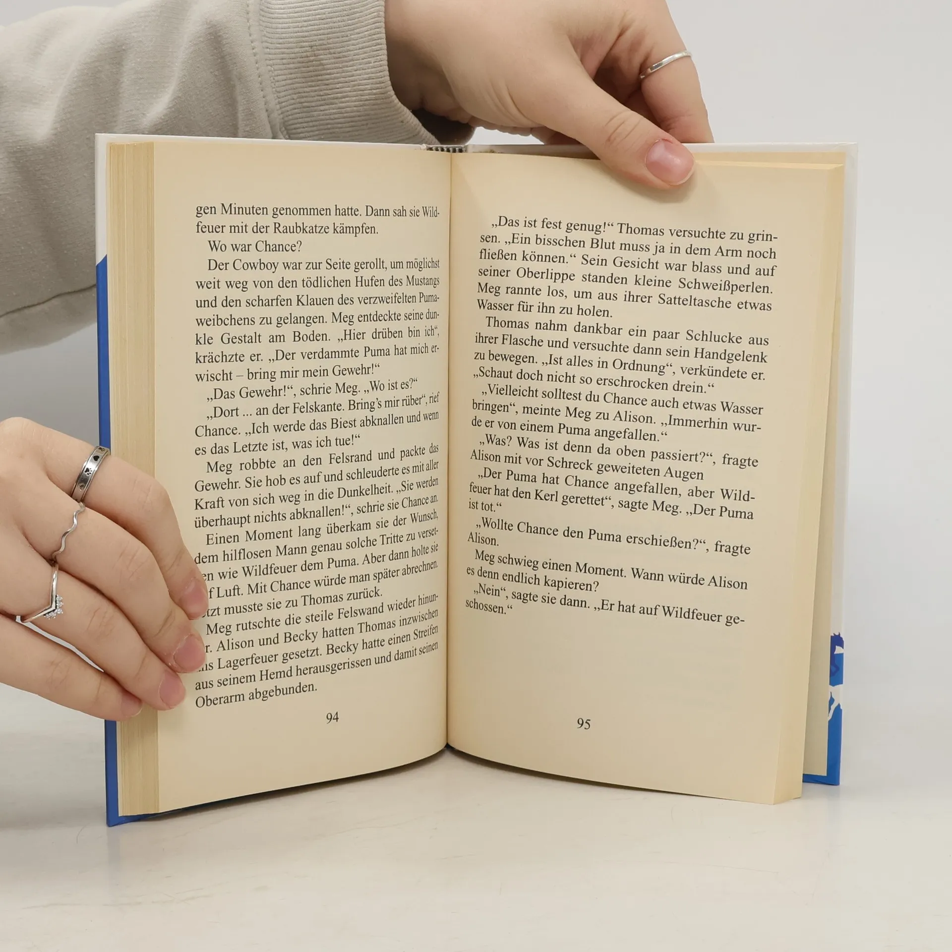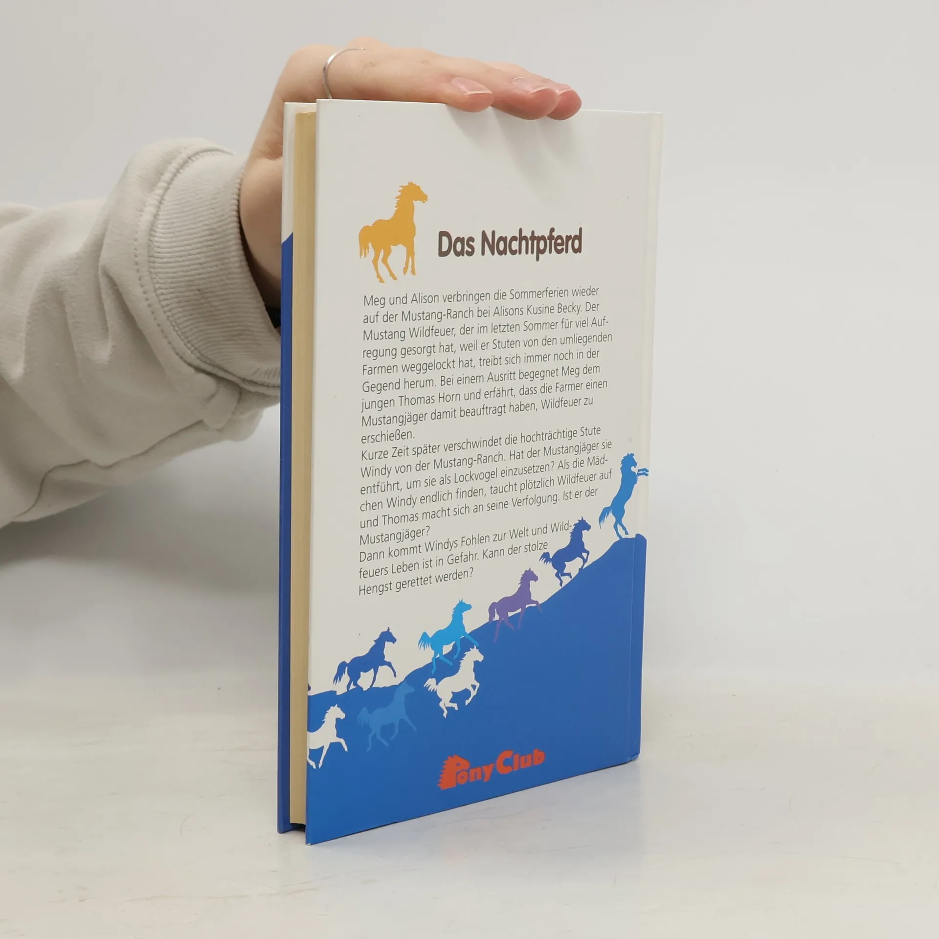 Meg und Alison verbringen die Sommerferien wieder auf der Mustang-Ranch bei Alisons Kusine Becky. Der Mustang Wildfeuer, der im letzten Sommer für viel Aufregung gesorgt hat, weil er Stuten von den umliegenden Farmen weggelockt hat, treibt sich immer noch in der Gegend herum. Bei einem Ausritt begegnet Meg dem jungen Thomas Horn und erfährt, dass die Farmer einen Mustangjäger damit beauftragt haben, Wildfeuer zu erschießen. Kurze Zeit später verschwindet die hochträchtige Stute Windy von der Mustang-Ranch. Hat der Mustangjäger sie entführt, um sie als Lockvogel einzusetzen? Als die Mädchen Windy endlich finden, taucht plötzlich Wildfeuer auf und Thomas macht sich an seine Verfolgung. Ist er der Mustangjäger? Dann kommt Windys Fohlen zur Welt und Wildfeuers Leben ist in Gefahr. Kann der stolze Hengst gerettet werden?