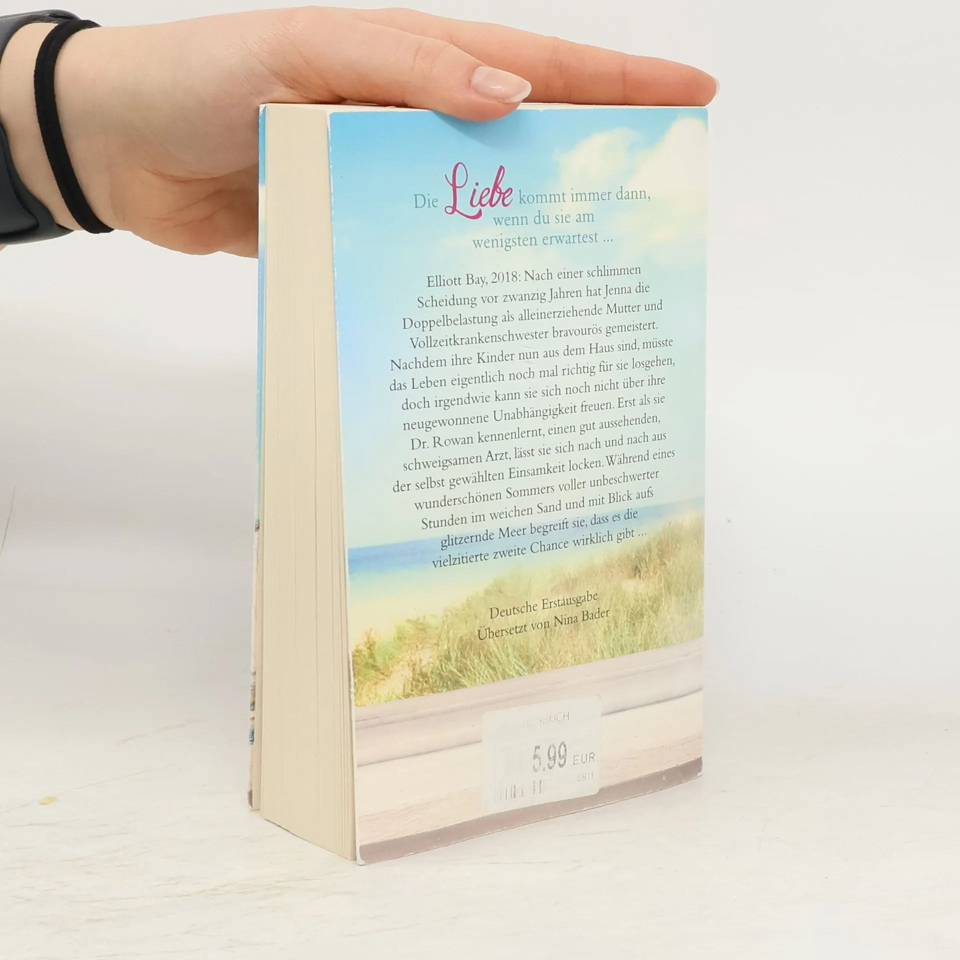Die Liebe kommt immer dann, wenn du sie am wenigsten erwartest ... Elliott Bay, 2018: Nach einer hässlichen Scheidung vor 20 Jahren hat Jenna die Doppelbelastung als alleinerziehende Mutter und Vollzeit-Krankenschwester bravourös gemeistert. Nachdem ihre Kinder nun aus dem Haus sind, müsste das Leben eigentlich nochmal richtig für sie losgehen, doch irgendwie kann sie sich noch nicht über ihre neugewonnene Unabhängigkeit freuen. Erst als sie Dr. Rowan kennenlernt, einen gutaussehenden, schweigsamen Arzt, lässt sie sich nach und nach aus der selbst gewählten Einsamkeit locken. Während eines wunderschönen Sommers voller unbeschwerter Stunden im weichen Sand und mit Blick aufs glitzernde Meer begreift sie, dass es die vielzitierte zweite Chance wirklich gibt ...