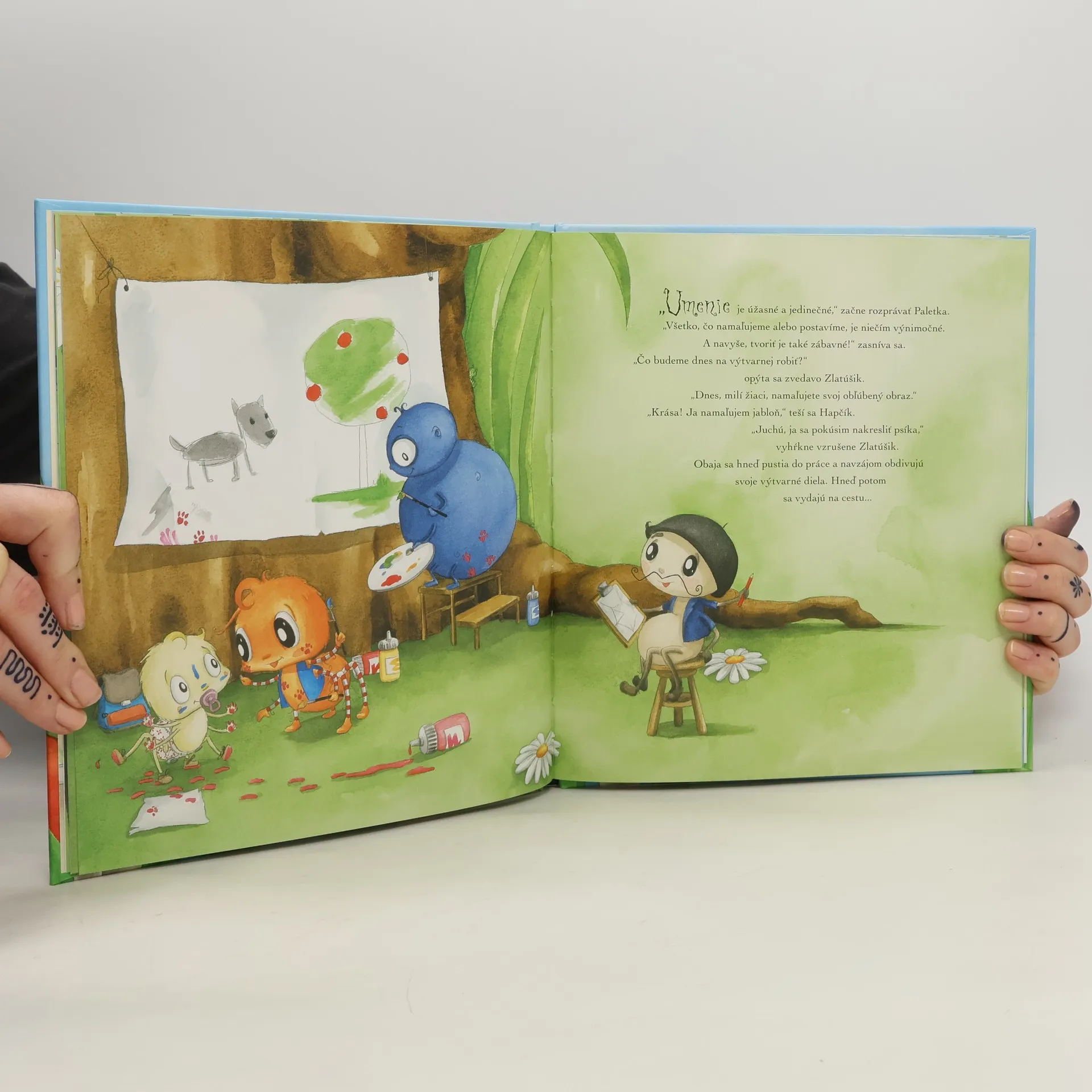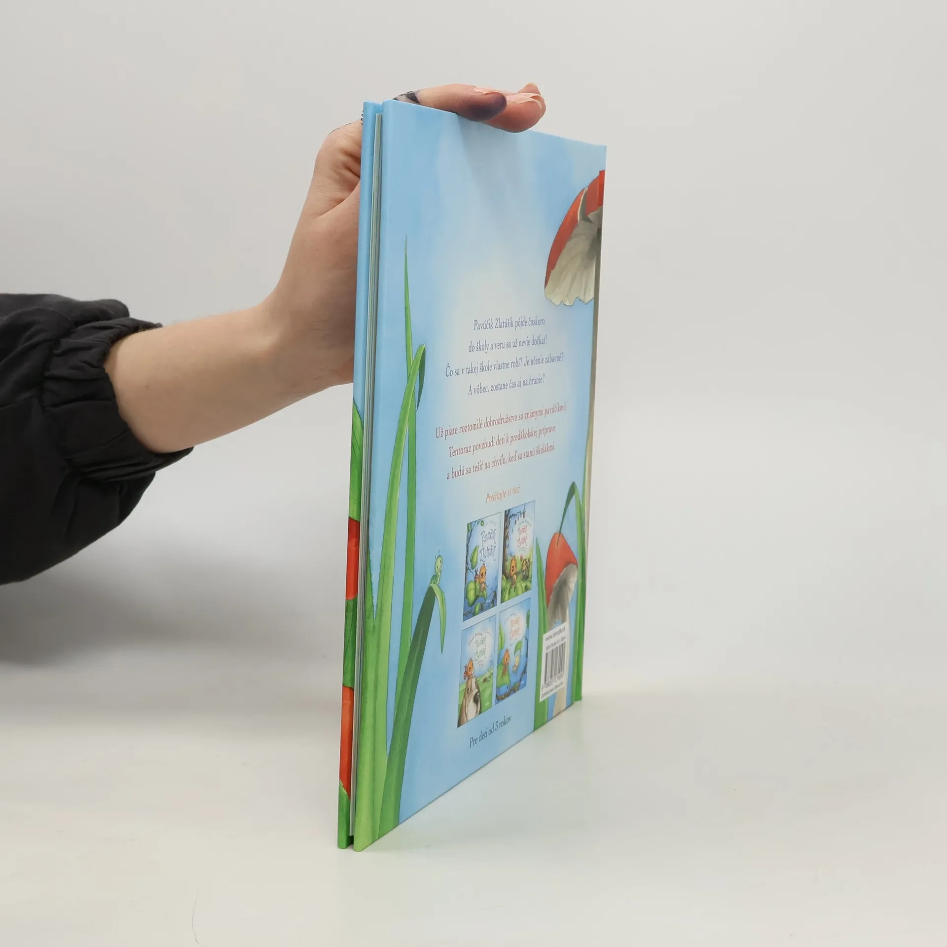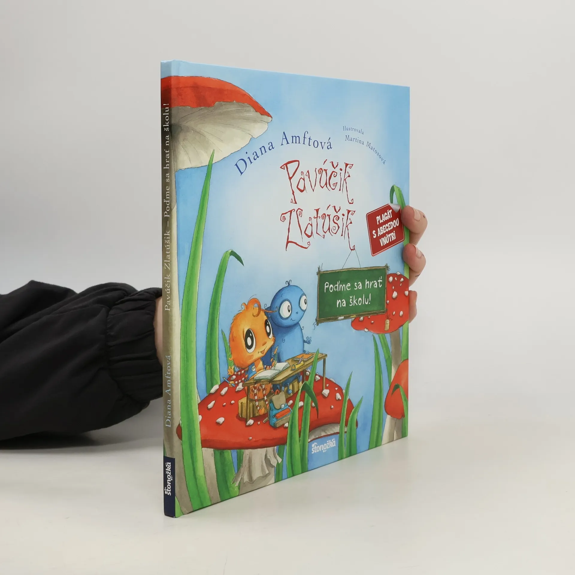 Už piate roztomilé dobrodružstvo so známymi pavúčikmi! Zlatúšik so svojou sestričkou Minkou a najlepším kamarátom Hapčíkom sa zahrajú na školáčikov ? pavúžiačikov. Pavúčik Zlatúšik pôjde čoskoro do školy a veru sa už nevie dočkať! Je učenie zábavné? A vôbec, zostane čas aj na hranie? Čo sa v takej škole robí, to sa dozvie od svojich príbuzných a kamarátov: so strýkom Dlhonôžkom bude počítať, so Svalíkom cvičiť na telesnej výchove a na hodine so sesternicou Peknuškou si vyskúša rôzne hudobné nástroje. Umelec Paletka mu porozpráva o tom, aké úžasné je umenie, teta Smejka o tajomstvách prírody a starká Dobruška mu prezradí trik, ako sa naučiť abecedu. Obrázková knižka povzbudí deti k predškolskej príprave a budú sa tešiť na chvíľu, keď sa stanú školákmi. Ku knižke je ako bonus priložený veselý plagát s abecedou.
