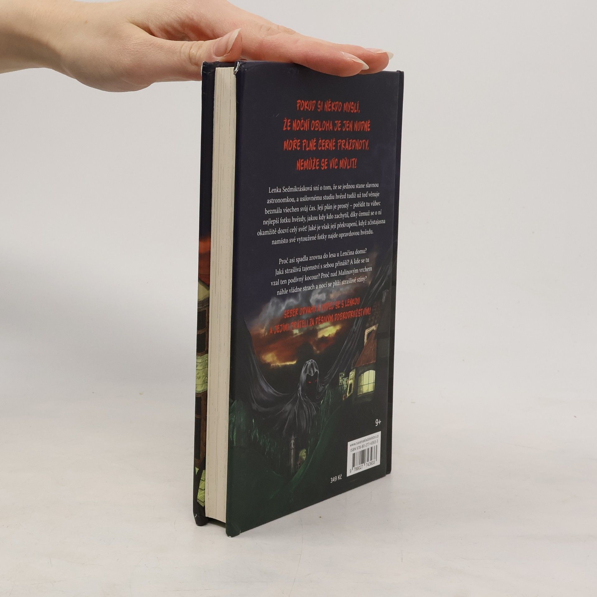 Pokud si někdo myslí, že noční obloha je jen nudné moře plné černé prázdnoty, nemůže se víc mýlit! Vítejte v malém městečku uprostřed lesů a kopců, které by zrovna tak mohlo být i to vaše. Vítejte v Malinovém vrchu. Kromě divoké přírody toho tady příliš k vidění není, ale občas se před námi ty nejzajímavější věci schovávají ve stínech. Lenka Sedmikrásková celý život sní o tom, že se stane slavnou astronomkou a usilovnému studiu hvězd tudíž už teď věnuje bezmála všechen svůj čas. Její plán je prostý - zachytit tu vůbec nejlepší fotku hvězdy, jakou kdy kdo zachytil, díky čemuž se o ní okamžitě dozví celý svět! Jaké je však její překvapení, když zčistajasna namísto své vytoužené fotky najde opravdovou hvězdu. Proč asi spadla zrovna do lesa u Lenčina domu? Jaká strašlivá tajemství se v ní asi ukrývají? A kde se tu vzal ten podivný kocour? Proč nad Malinovým vrchem náhle vládne strach a nocí se plíží strašlivé stíny?