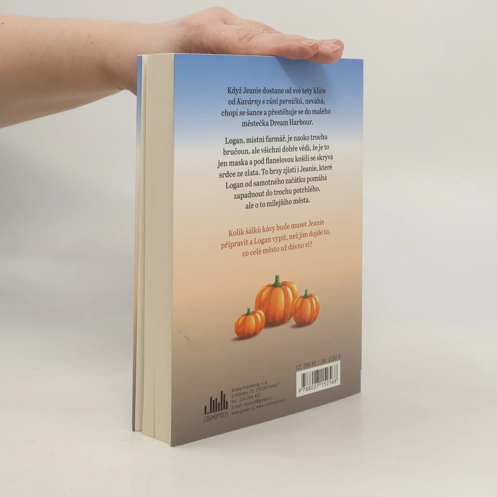 Když Jeanie dostane od své tety klíče od Kavárny s vůní perníčků, neváhá, chopí se šance a přestěhuje se do malého městečka Dream Harbour. Logan, místní farmář, je naoko trochu bručoun, ale všichni dobře vědí, že je to jen maska a pod flanelovou košilí se skrývá srdce ze zlata. To brzy zjistí i Jeanie, které Logan od samotného začátku pomáhá zapadnout do trochu potrhlého, ale o to milejšího města. Kolik šálků kávy bude muset Jeanie připravit a Logan vypít, než jim dojde to, co celé město už dávno ví?