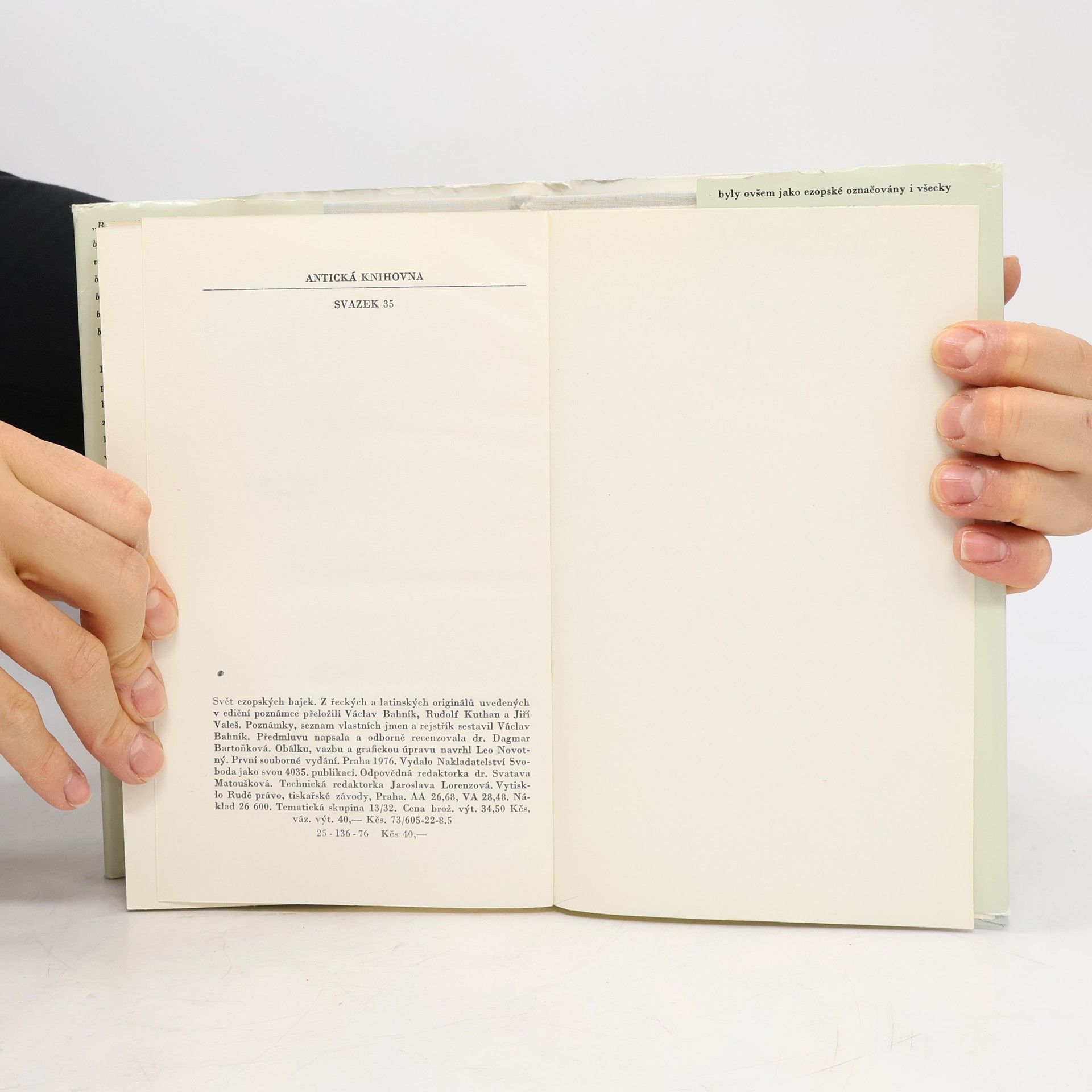 There are currently of book Svět ezopských bajek (1976) in stock.