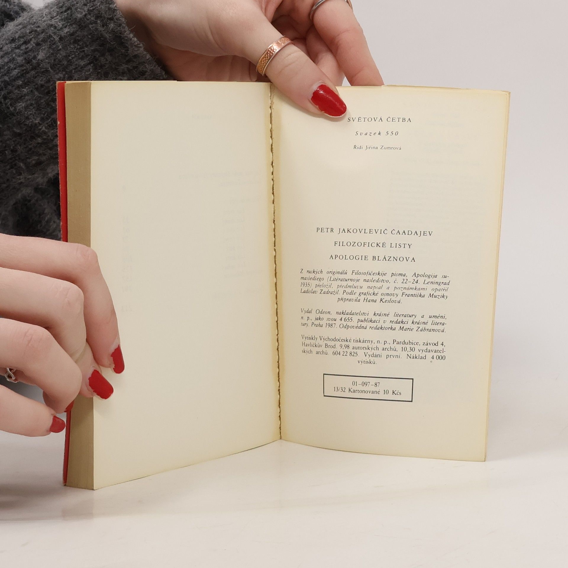 Filozofické listy. Apologie bláznova, Ladislav Zadražil, Petr Jakovlevič Čaadajev