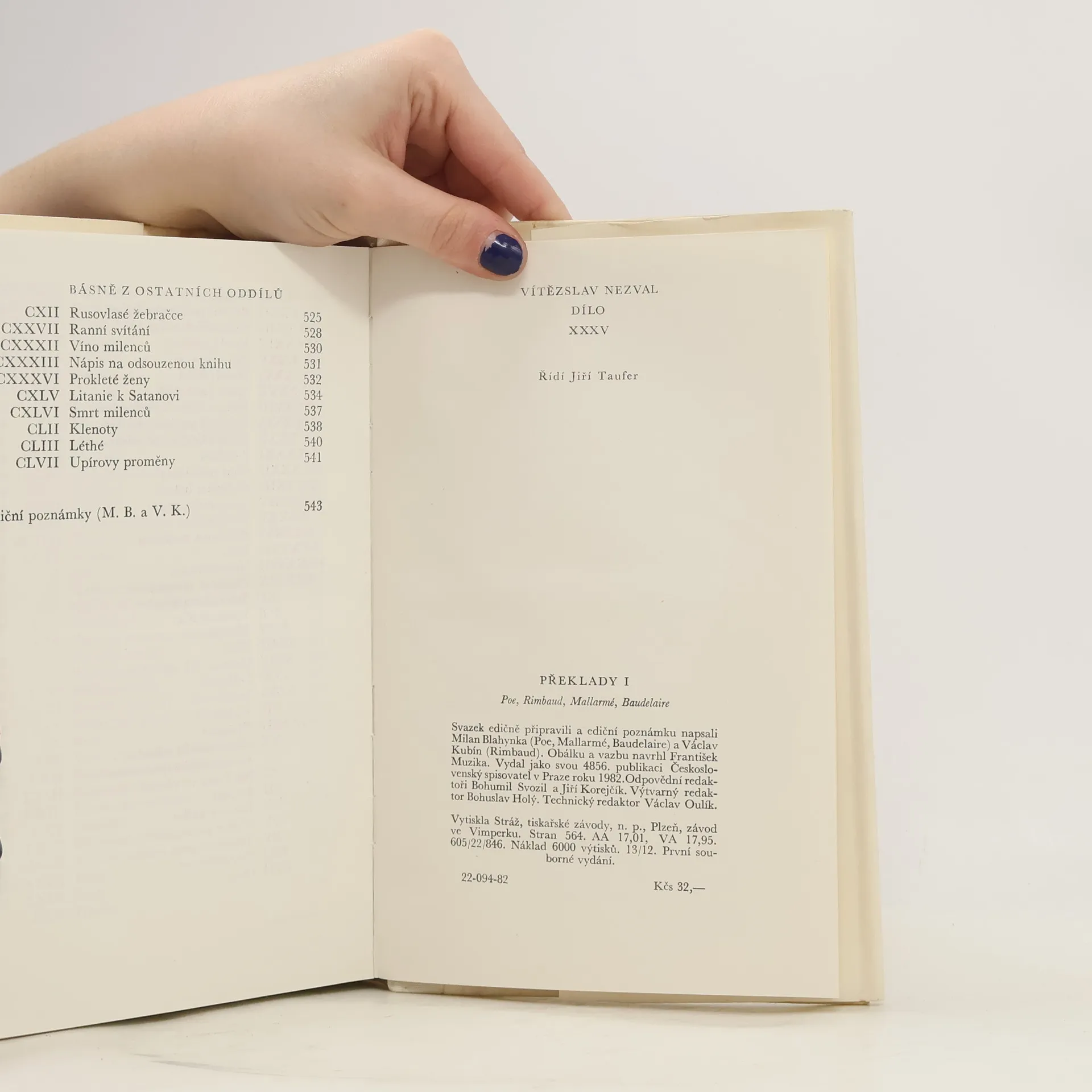 Dílo XXXV. Překlady I. Poe. Rimbaud. Mallarmé. Baudelaire, Vítězslav Nezval, Edgar Allan Poe, Arthur Rimbaud, Stéphane Mallarmé, Charles Baudelaire