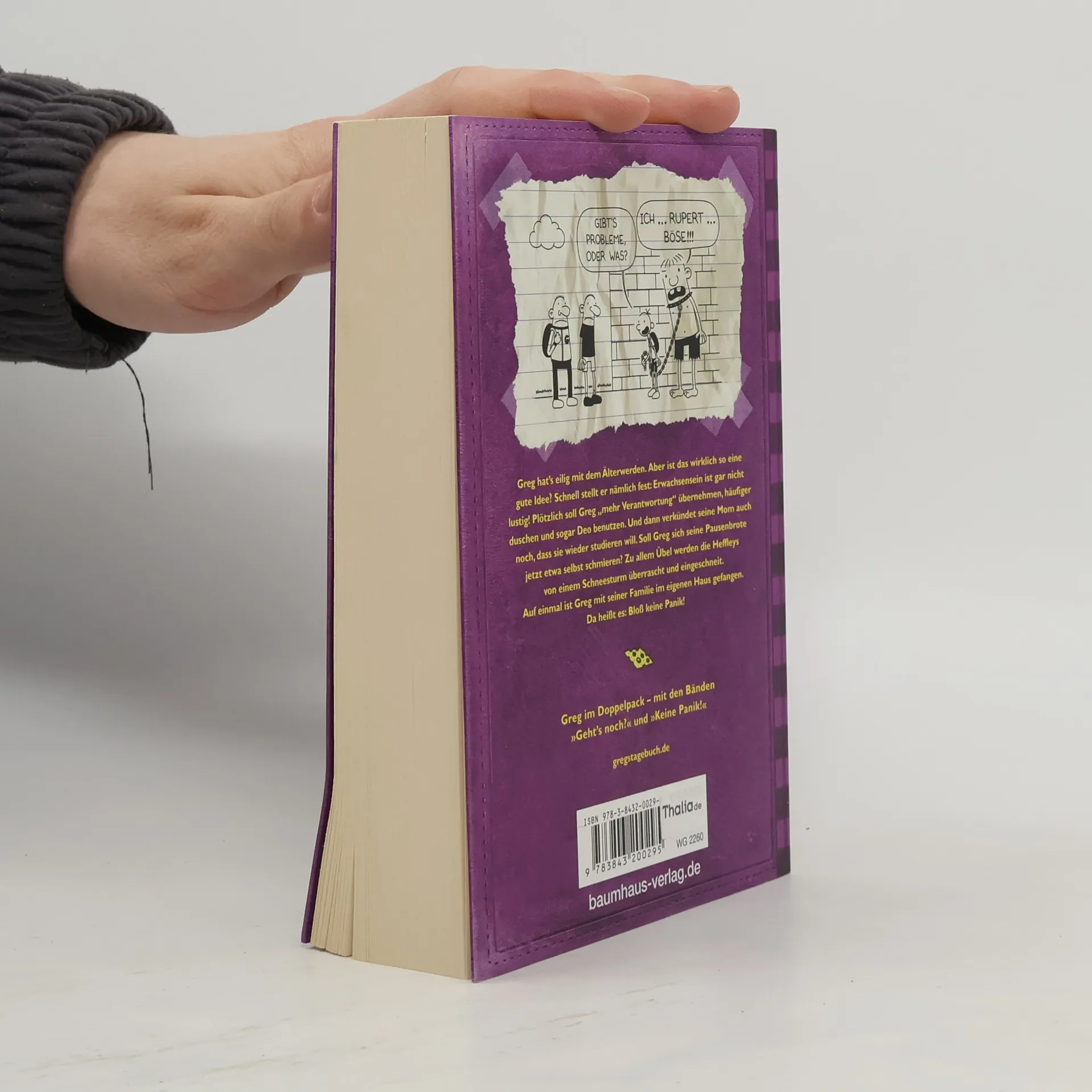 Greg hat's eilig mit dem Älterwerden. Aber ist das wirklich so eine gute Idee? Schnell stellt er nämlich fest: Erwachsensein ist gar nicht lustig! Plötzlich soll Greg »mehr Verantwortung« übernehmen, häufiger duschen und Deo benutzen. Und dann verkündet seine Mom auch noch, dass sie wieder studieren will. Soll Greg sich seine Pausenbrote jetzt etwa selbst schmieren? Zu allem Übel werden die Heffleys von einem Schneesturm überrascht und eingeschneit. Auf einmal ist Greg mit seiner Familie im eigenen Haus gefangen. Da heißt es: Bloß keine Panik!