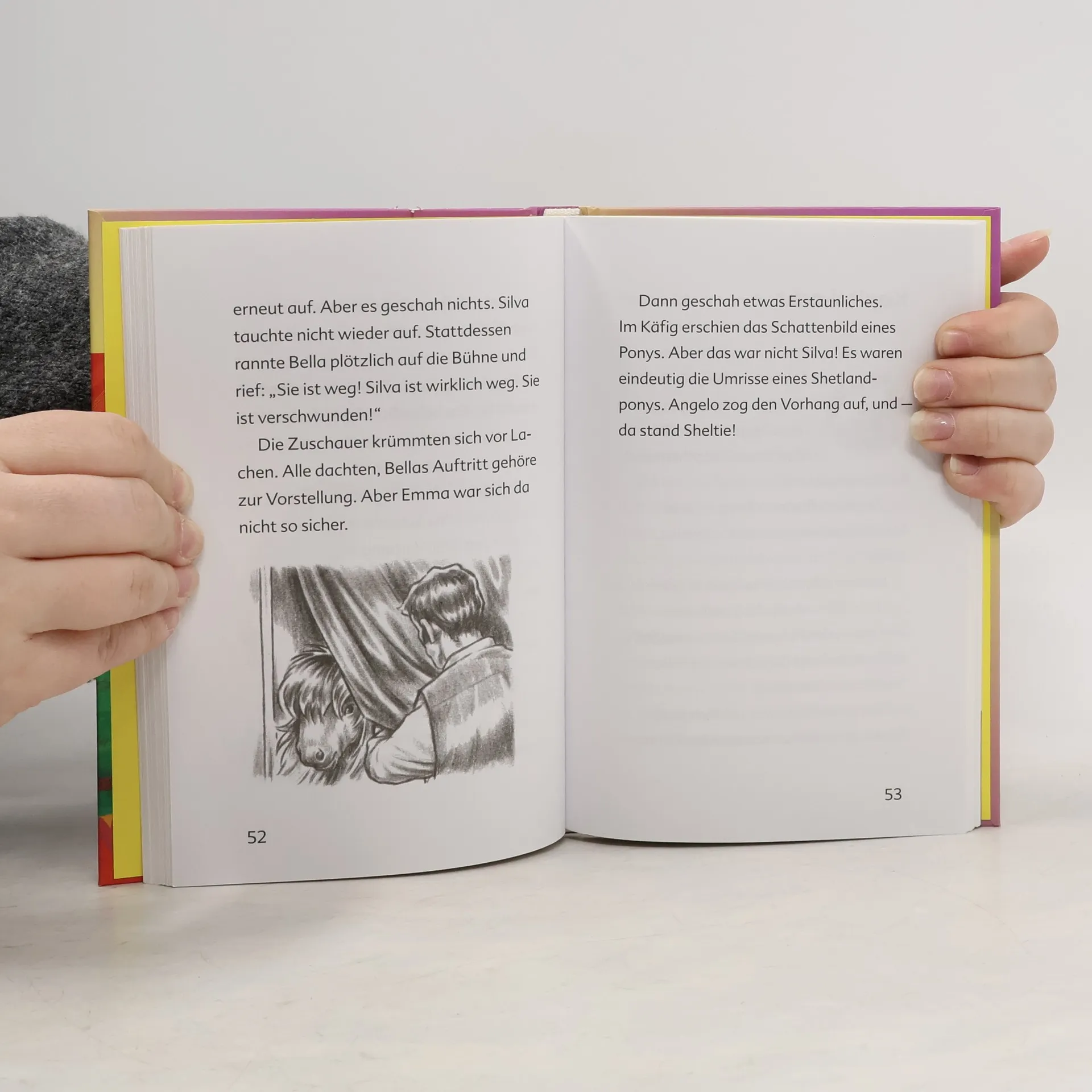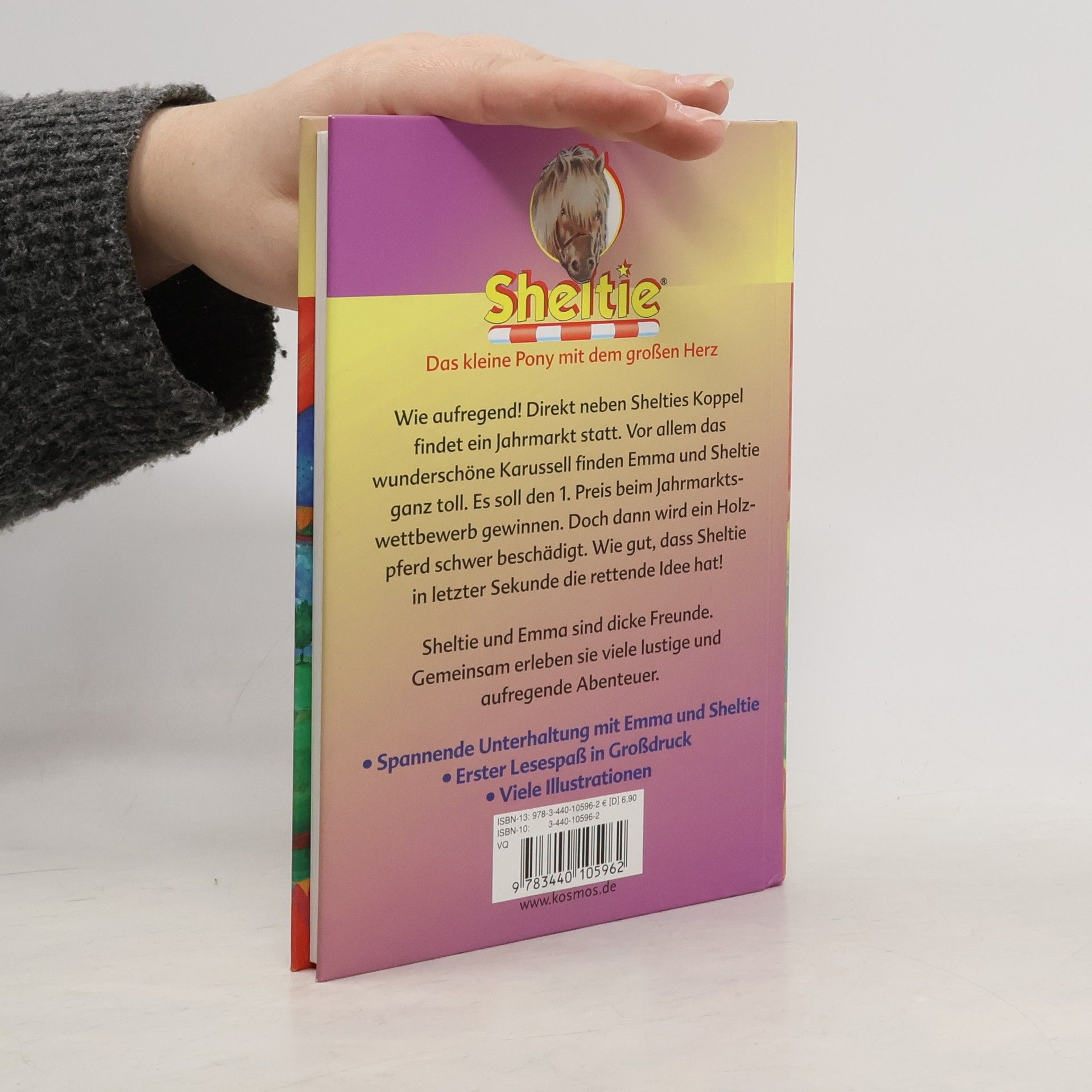 Direkt neben Shelties Koppel findet ein Jahrmarkt statt. Vor allem das wundschöne Karussell mit den Holzpferden finden Emma und Sheltie ganz toll. Es soll den 1. Preis beim Jahrmarktswettbewerb gewinnen. Doch dann wird ein Holzpferd schwer beschädigt. Wie gut, dass Sheltie in letzter Sekunde die rettende Idee hat!