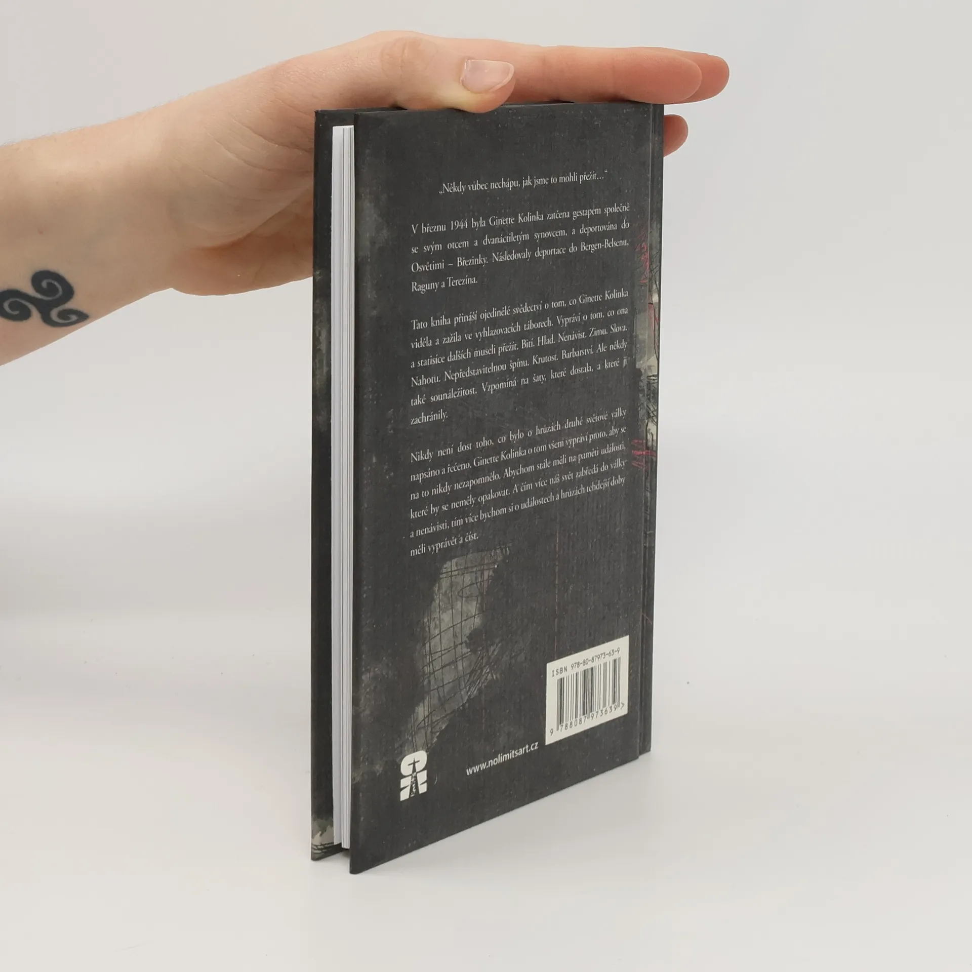 Útlá kniha, ale silné autobiografické vzpomínky francouzské židovky, kterou nacisté v roce 1944, když jí bylo devatenáct let, odvlekli do vyhlazovacího tábora Osvětim-Březinka a pak dalších táborů. V březnu 1944 byla Ginette Kolinka zatčena gestapem společně se svým otcem a dvanáctiletým synovcem, a deportována do Osvětimi - Březinky. Následovaly deportace do Bergen-Belsenu, Raguny a Terezína. Tato kniha přináší ojedinělé svědectví o tom, co Ginette Kolinka viděla a zažila ve vyhlazovacích táborech. Vypráví o tom, co ona a statisíce dalších museli přežít. Bití. Hlad. Nenávist. Zimu. Slova. Nahotu. Nepředstavitelnou špínu. Krutost. Barbarství. Ale někdy také sounáležitost. Vzpomíná na šaty, které dostala, a které ji zachránily. Ginette Kolinka o tom všem vypráví proto, aby se na to nikdy nezapomnělo. Abychom stále měli na paměti události, které by se neměly opakovat. A čím více náš svět zabředá do války a nenávisti, tím více bychom si o událostech a hrůzách tehdejší doby měli vyprávět a číst. Nakladatelská anotace. Kráceno.