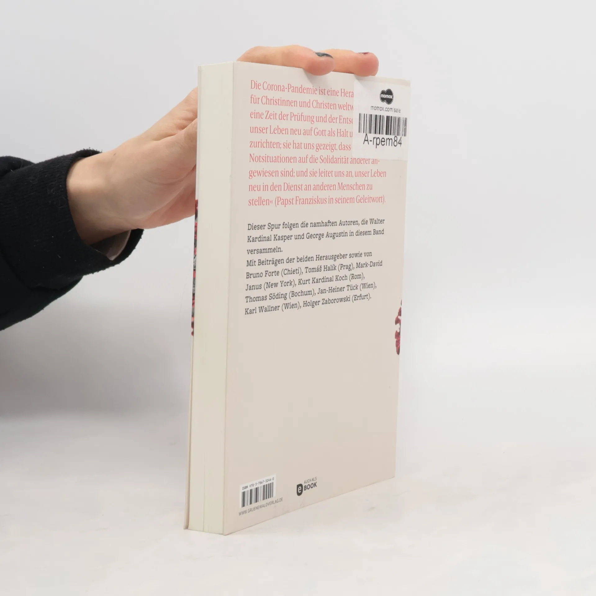 Die Corona-Pandemie ist eine Herausforderung für Christinnen und Christen weltweit. »Es ist eine Zeit der Prüfung und der Entscheidung, unser Leben neu auf Gott als Halt und Ziel auszurichten; sie hat uns gezeigt, dass wir gerade in Notsituationen auf die Solidarität anderer angewiesen sind; und sie leitet uns an, unser Leben neu in den Dienst an anderen Menschen zu stellen« (Papst Franziskus). Dieser Spur folgen die namhaften Autoren, die Walter Kardinal Kasper und George Augustin in diesem Band versammeln. Mit Beiträgen der beiden Herausgeber sowie von Bruno Forte (Chieti), Tomáš Halík (Prag), Mark-David Janus (New York), Kurt Kardinal Koch (Rom), Thomas Söding (Bochum), Jan-Heiner Tück (Wien), Karl Wallner (Wien), Holger Zaborowski (Erfurt).