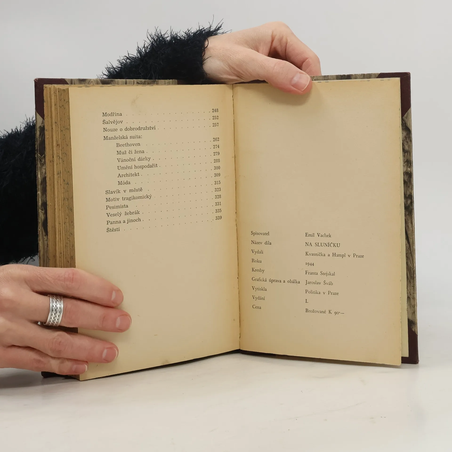 Veselé povídky: Koloběh, Počítací stroj, Hodný král a statečný vojín, Syn Pavla Říhoška, Nepochopen, Lev Gal, Rýma, Milost blahoslaveného Pafnuce, Obchůdek devotionaliemi, Přírodní lékař, Obchodní duch, Bijce za právo, Na hostině svatební, Komisař Plašil, Jak se stal Labuťka kapsářem, Štědrý den, Po půlnoci, Nosy, Cihla, Zuřivá učitelka, Ten mizera Miletínek, Slavný rodák, Modřina, Šalvějov, Nouze o dobrodružství, Manželská suita, Slavík v městě, Motiv tragikomický, Pesimista, Veselý žebrák, Panna a jinoch, Štěstí