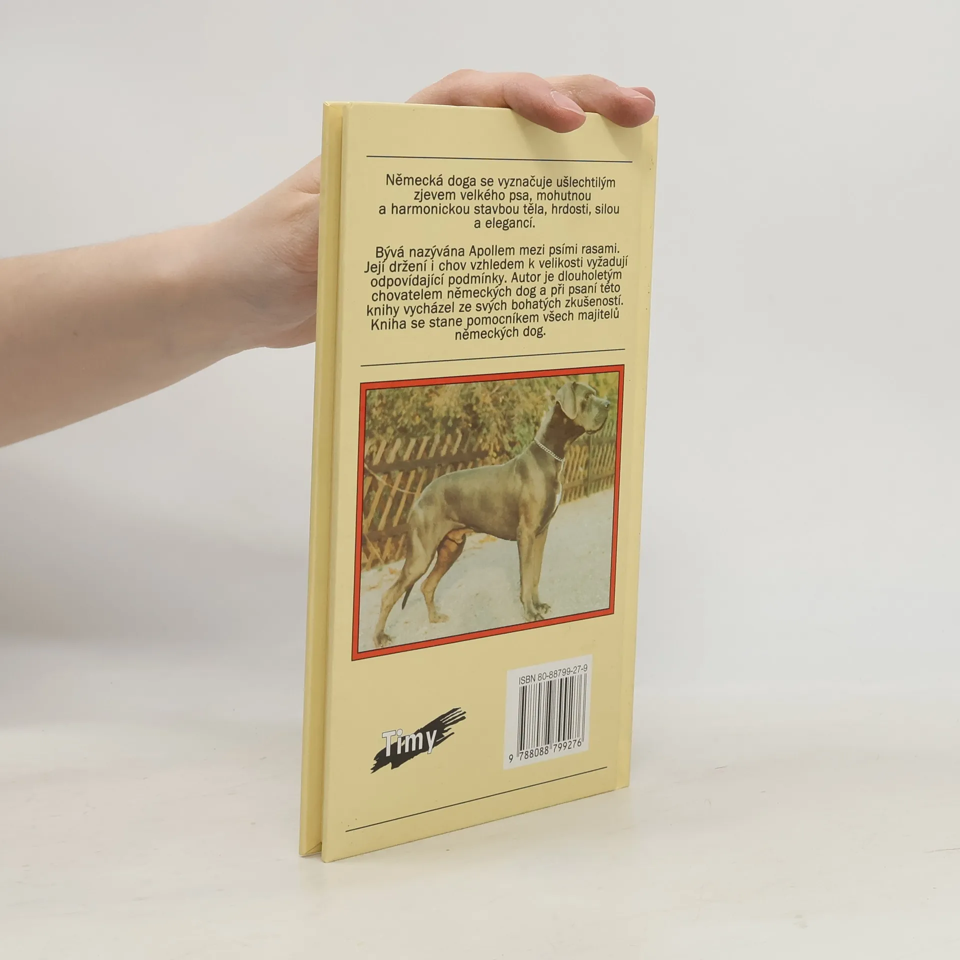 Německá doga se vyznačuje ušlechtilým zjevem velkého psa, mohutnou a harmonickou stavbou těla, hrdostí, silou a elegancí. Bývá nazývána Apollem mezi psími rasami. Její držení i chov vzhledem k velikosti vyžadují odpovídající podmínky. Autor je dlouholetým chovatelem německých dog a při psaní této knihy vycházel ze svých bohatých zkušeností. Kniha se stane pomocníkem všech majitelů německých dog.Foto na obálce: Rechtacek a Bischoff.