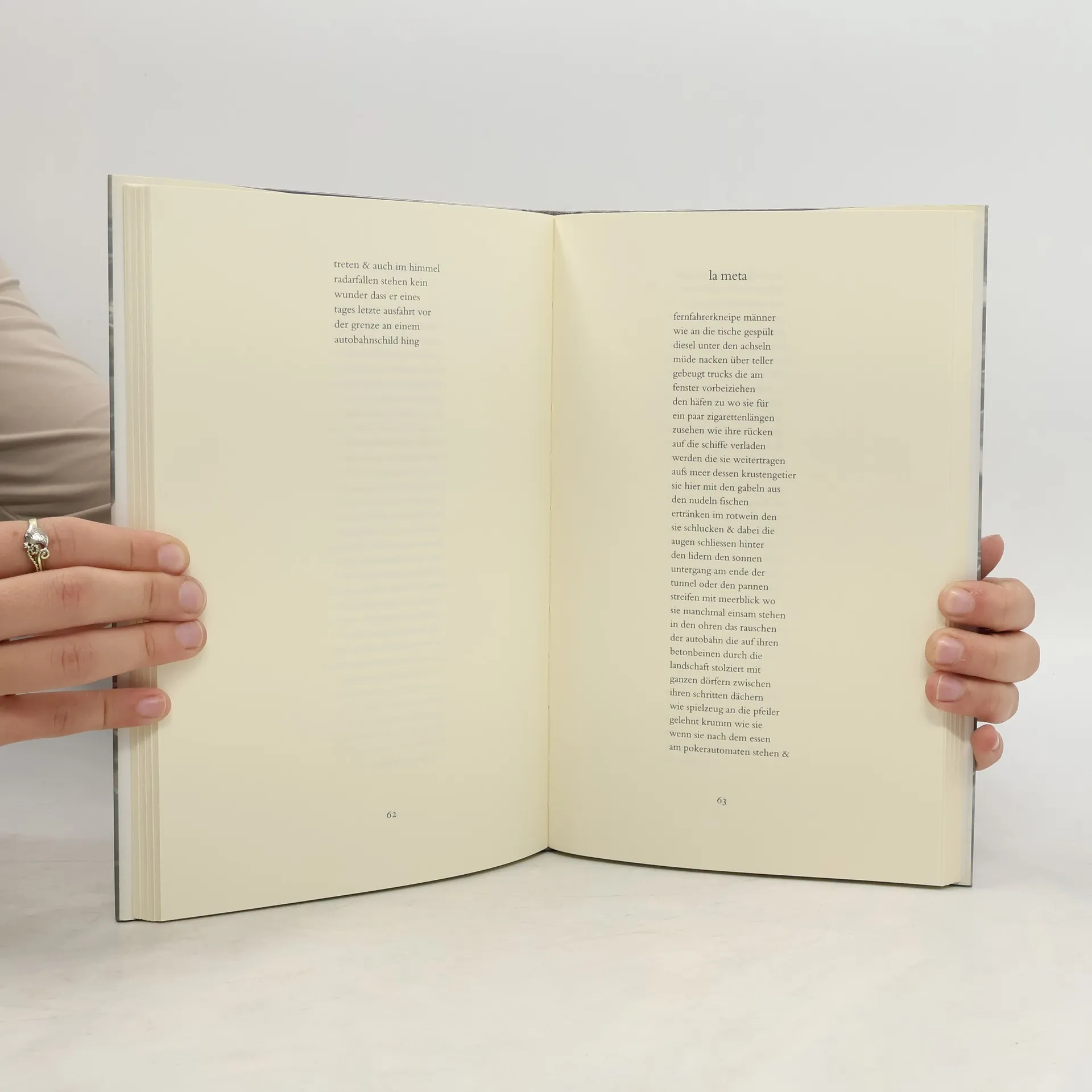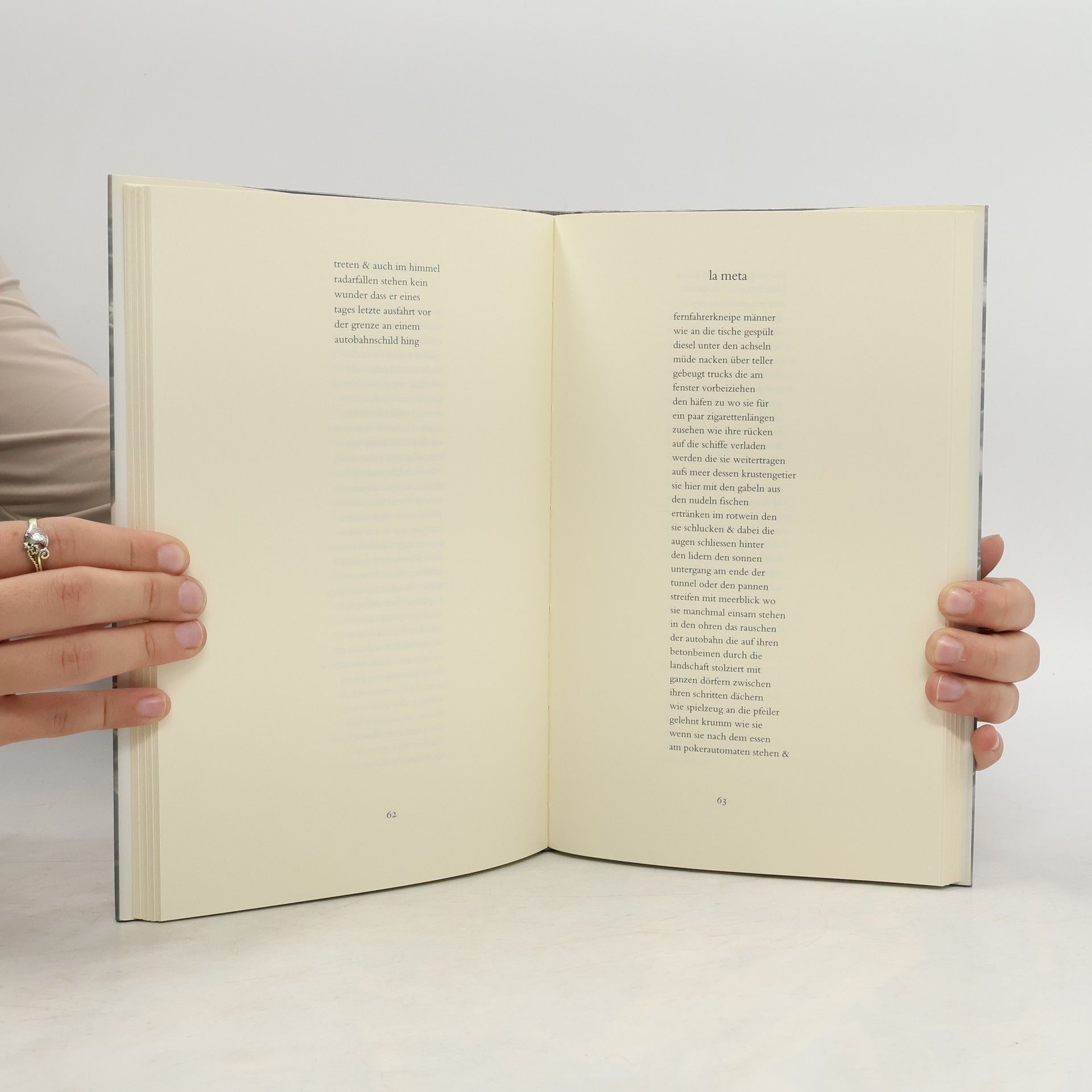 Albert Ostermaiers Gedichte sind Polaroids der Gegenwart, die den Moment feiern und gleichzeitig auf der Flucht sind. Sie verbinden das Chaos Kalkuttas mit der Einsamkeit des Death Valley und reflektieren den Rhythmus der Städte sowie die Melancholie endloser Landschaften. Die Hektik der Metropolen und die nervöse Statik großer Gefühle finden ihren Ausdruck. Jenseits von Idylle und Zynismus verschmelzen harte und weiche Emotionen, wobei ein Liebesgedicht mit zärtlichen Worten von einem kalten Metall im Mund spricht, das an den Zähnen geschliffen wurde. Das Sprechen wechselt zwischen Flüstern und Schreien. Die Texte tragen oft ein gestisches Element, was nicht überrascht, da der Autor auch als Theaterautor bekannt ist. Politische Themen und persönliche Erlebnisse sind eng miteinander verwoben, als wäre es eine natürliche Notwendigkeit. In der Brechthommage „face fatzer“ wird beispielsweise die Beziehung zwischen Mensch und Natur thematisiert. Diese Gedichte werden im November 1999 dramatisiert auf die Bühne des Marstalls/Bayrisches Staatsschauspiel gebracht.