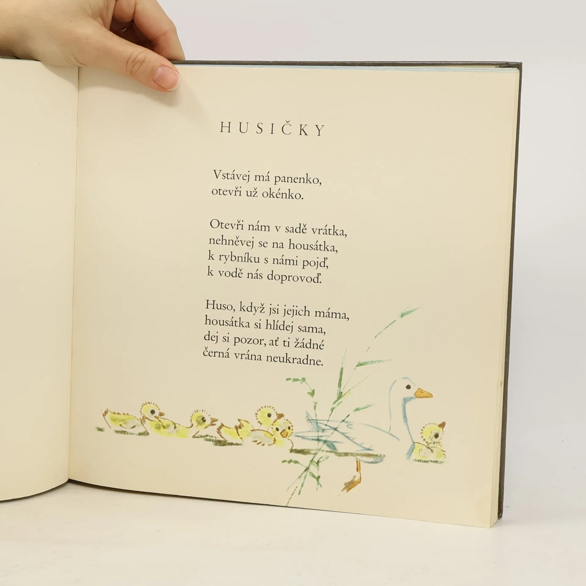 Sbírka krásných básní pro děti od 5 let (Větvička jmelí, Tři králové, Na saních, Masopust, Ptáčkové se vracejí, Husičky, Kůzlata na jaře, Motýlkový tanec, O prvním máji, V senoseči, Bohatýr, Cvrček, Kačer, Ve chlévě, Kopaná, Řeka a míč, Srnec, O žních, Klásky na poli, Na sadě, Kola, kolečka, Domů, domů, Babiččiny pohádky, Prší, prší, Do školy, Pouštění draků, Zabijačka, O Vánocích). Roztomilé ilustrace Adolfa Zábranského.