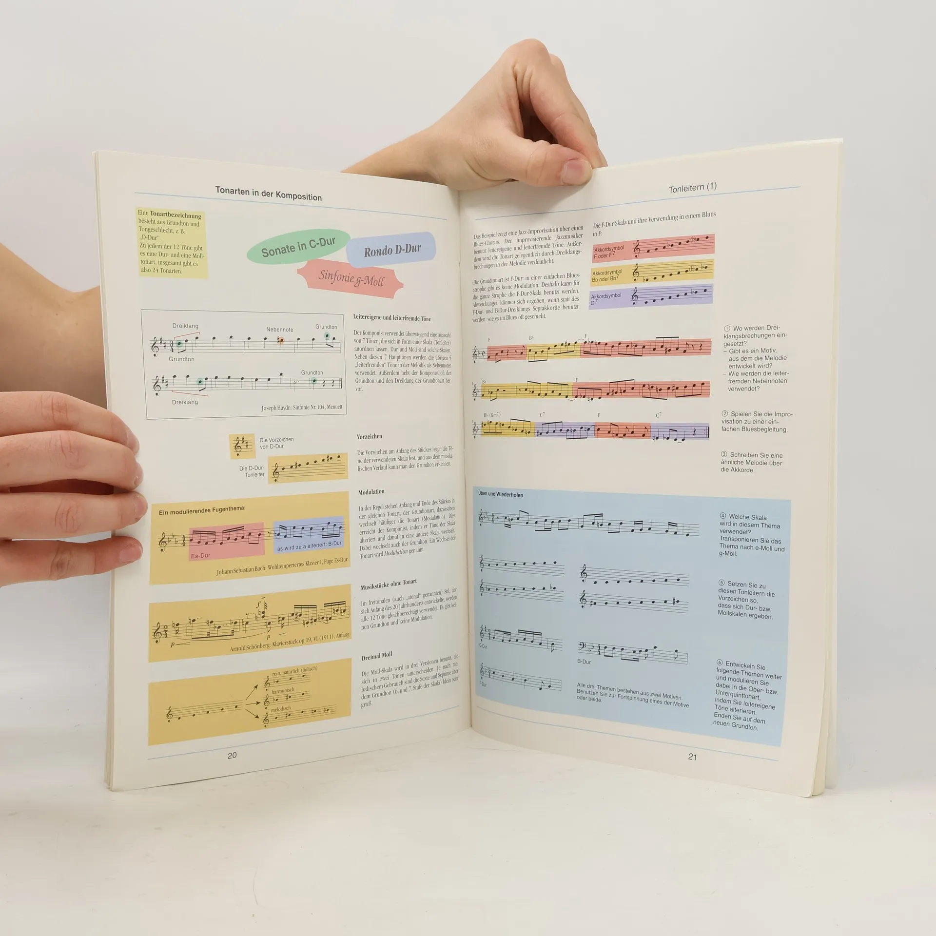 Der Übergang in die 11. Klasse oder der Einstieg in die Kursarbeit: Wie oft muß festgestellt werden, daß vom vermeintlich langjährig geübten musikalischen Grundwissen bei den Schülerinnen und Schülern kaum noch etwas vorhanden ist. Das vorliegende Arbeitsbuch wird diesem Defizit abhelfen. Auf übersichtliche Weise werden die Grundlagen der Musiktheorie dargestellt und geübt: Notenschrift, Zeit und Rhythmus, Intervalle, Skalen, Akkorde und Akkordfolgen, Satzlehre, Formprinzipien und Partituren. Das Heft eignet sich zum gezielten Nachschlagen, zur Vor‑ und Nachbereitung, und vermittelt durch zahlreiche praktische Anwendungen und Übungen ein lebendiges Bild der Materie.Unter https://www.klett.de/produkt/isbn/978... können Sie sich ein Arbeitsblatt und die Lösungen zu ausgewählten Schüleraufgaben im Heft herunterladen, allerdings für eine neuere Auflage mit anderem Deckblatt.