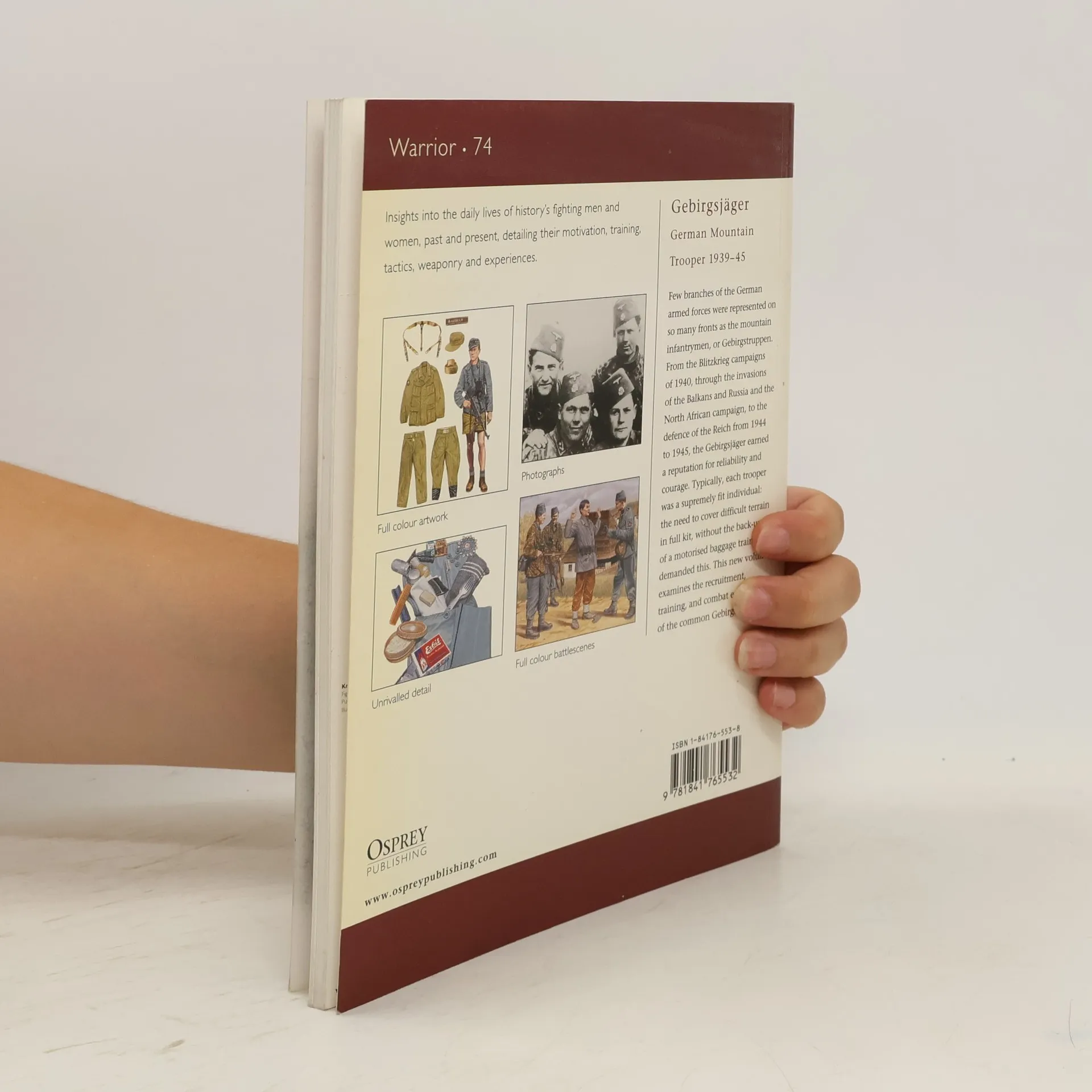 Few branches of the German armed forces were represented on so many fronts as the mountain infantrymen, or Gebirgstruppen. From the Blitzkrieg campaigns of 1940, through the invasions of the Balkans and Russia and the North African campaign, to the defence of the Reich 1944-45, the Gebirgsjäger earned a reputation for reliability and courage. Typically each trooper was a supremely fit individual: the need to cover difficult terrain in full kit, without the back-up of a motorised baggage train, demanded this. This new volume examines the recruitment, training, and combat experiences of the common Gebirgsjäger.