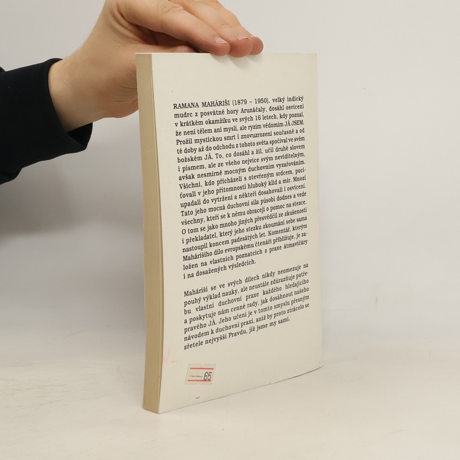 Obsah: Zkoumání já neboli sama sebe / Kdo jsem já? / Čtyřicet veršů na bytí / Dodatek - Anubhandham ke 40 veršům na Skutečnost / Třicet veršů / Pět hymnů na Arunáčalu Doslov překladatele Jiřího Vacka.