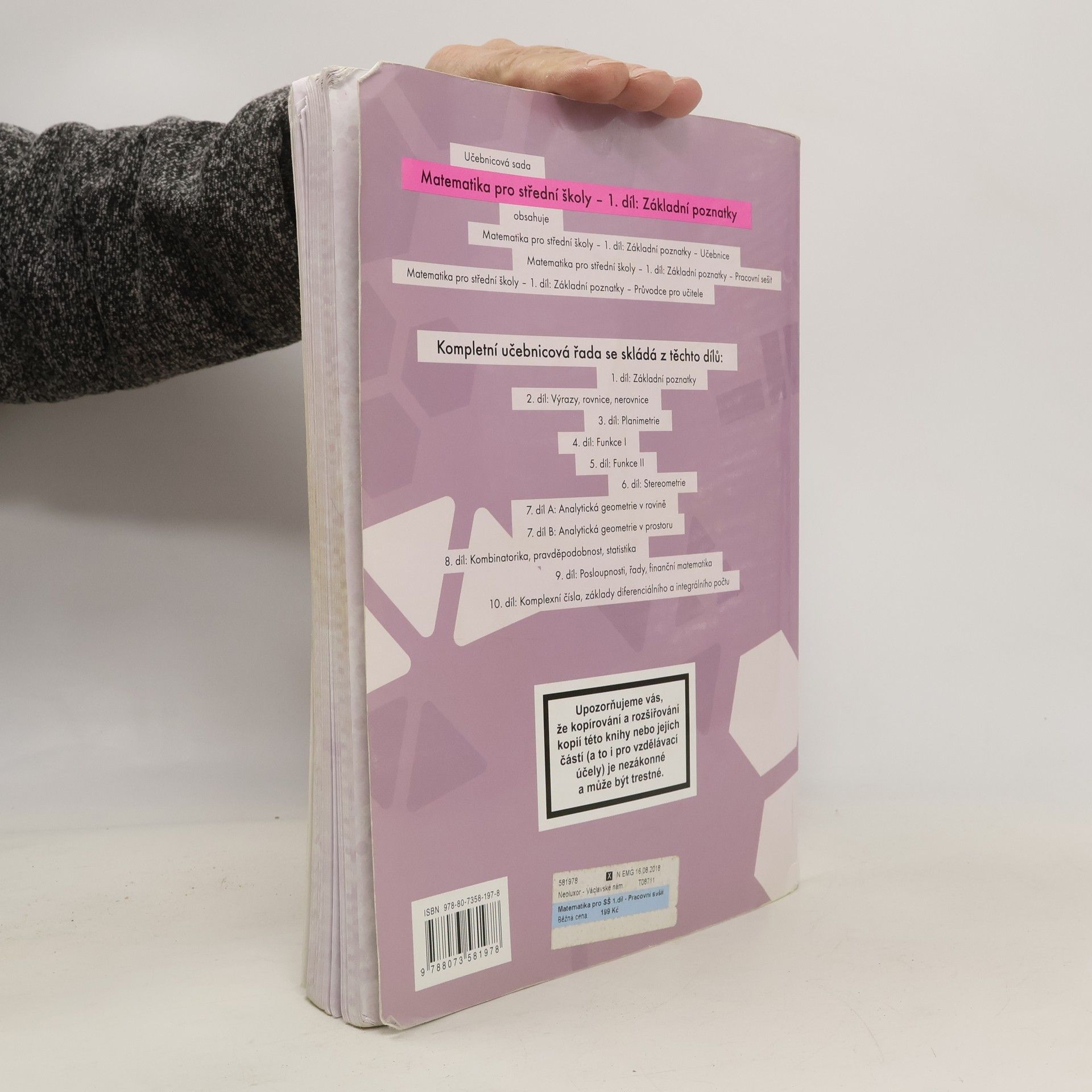 There are currently of book Matematika pro střední školy 1. díl. Základní poznatky. (2012) in stock.