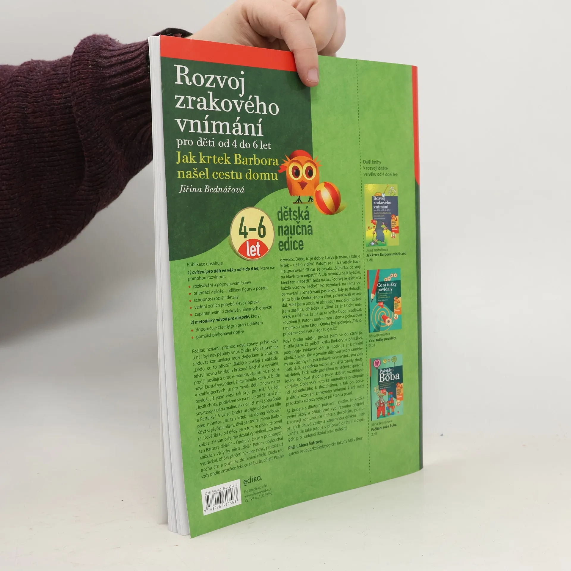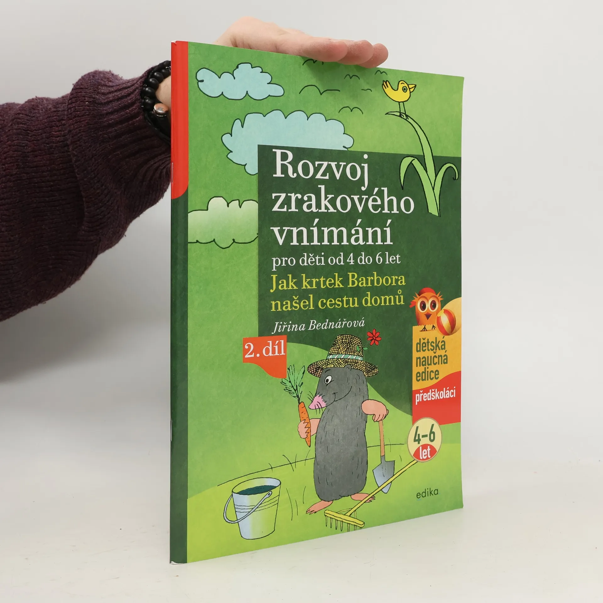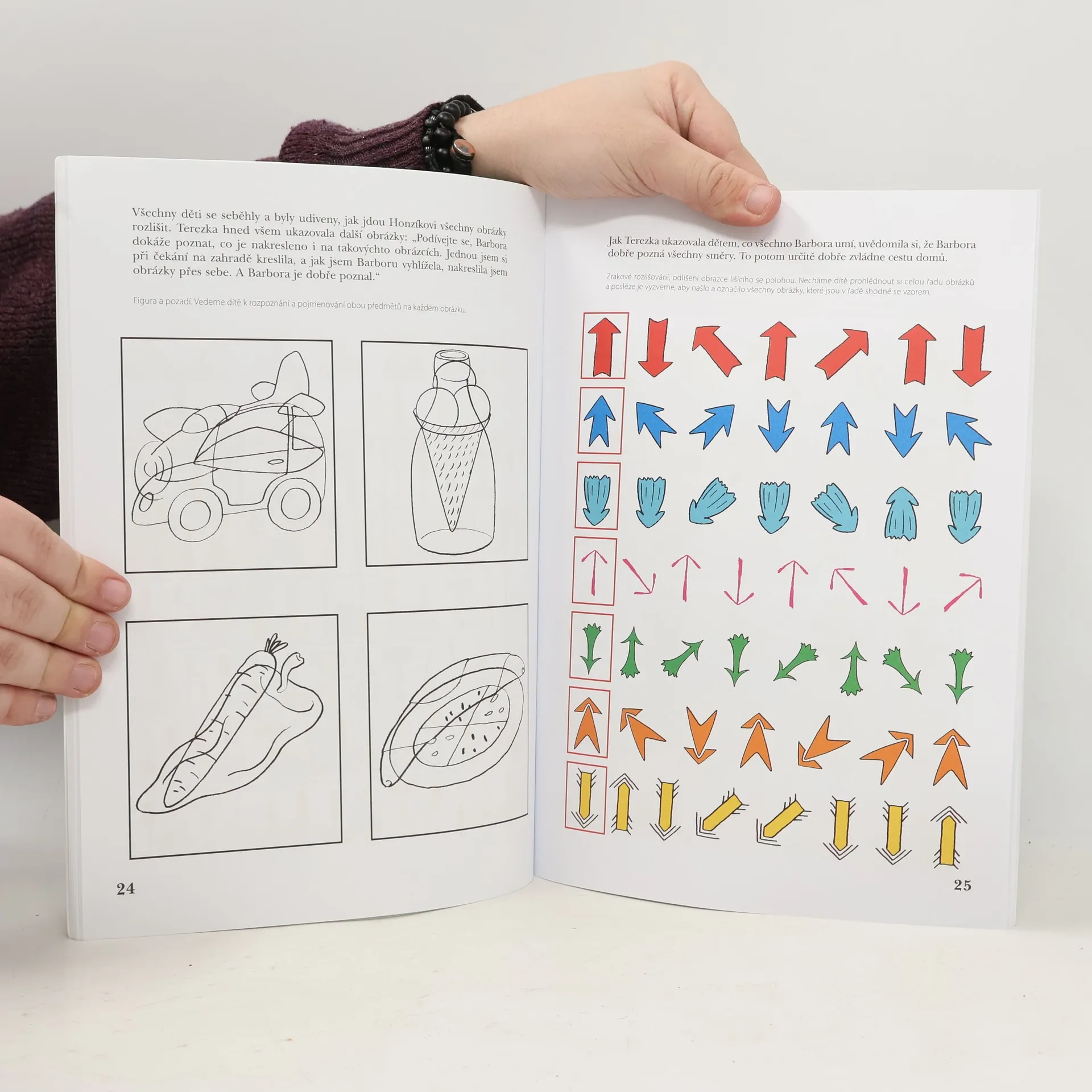 Publikace je určena předškolním dětem k rozvoji zrakového vnímání a prevenci potíží ve čtení a psaní plynoucích z nedostatečné zrakové percepce. Knížka se věnuje rozlišení a pojmenování barev, odlišení tvarů prvků. V knize jsou zahrnuta cvičení z oblasti zrakové diferenciace, zrakové analýzy a syntézy, zrakové paměti, rozlišení figury a pozadí, rovněž také cvičení k rozvoji očních pohybů.