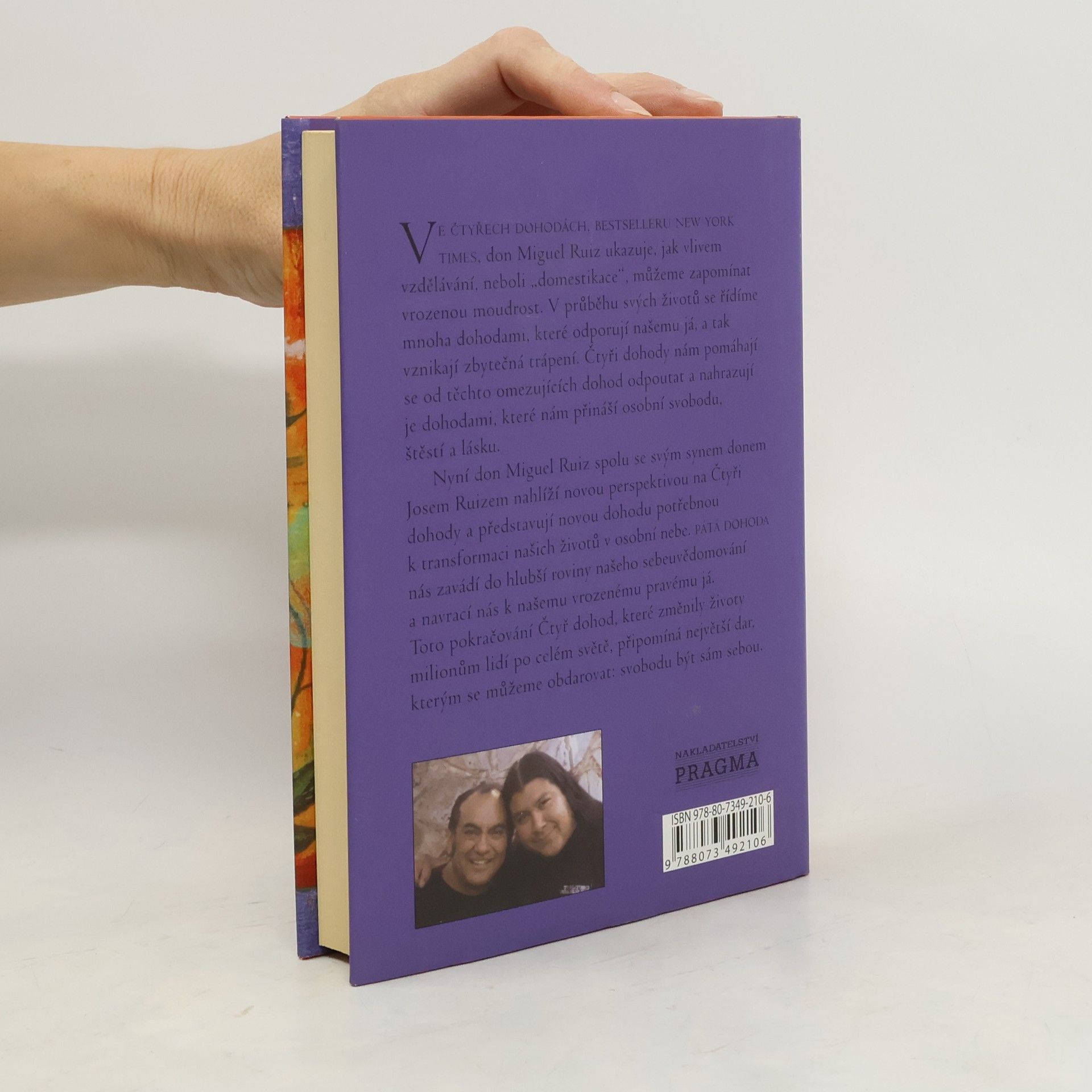 Po několika letech od vydání bestselleru Čtyři dohody vychází kniha Pátá dohoda. Don Miguel Ruiz v ní spolu se svým synem donem Josem Ruizem nabízí nový pohled na Čtyři dohody. Čtyři dohody, založené na staré toltécké moudrosti, nám pomohly prolomit naše omezující přesvědčení a nahradit je názory, které nám přináší osobní svobodu, štěstí a lásku. Výsledkem praktikování páté dohody je naprosté přijetí sebe sama takových, jací jsme, a naprosté přijetí všech ostatních lidí takových, jací jsou. Pátá dohoda chce přinést lidem na celém světě svobodu být sami sebou.