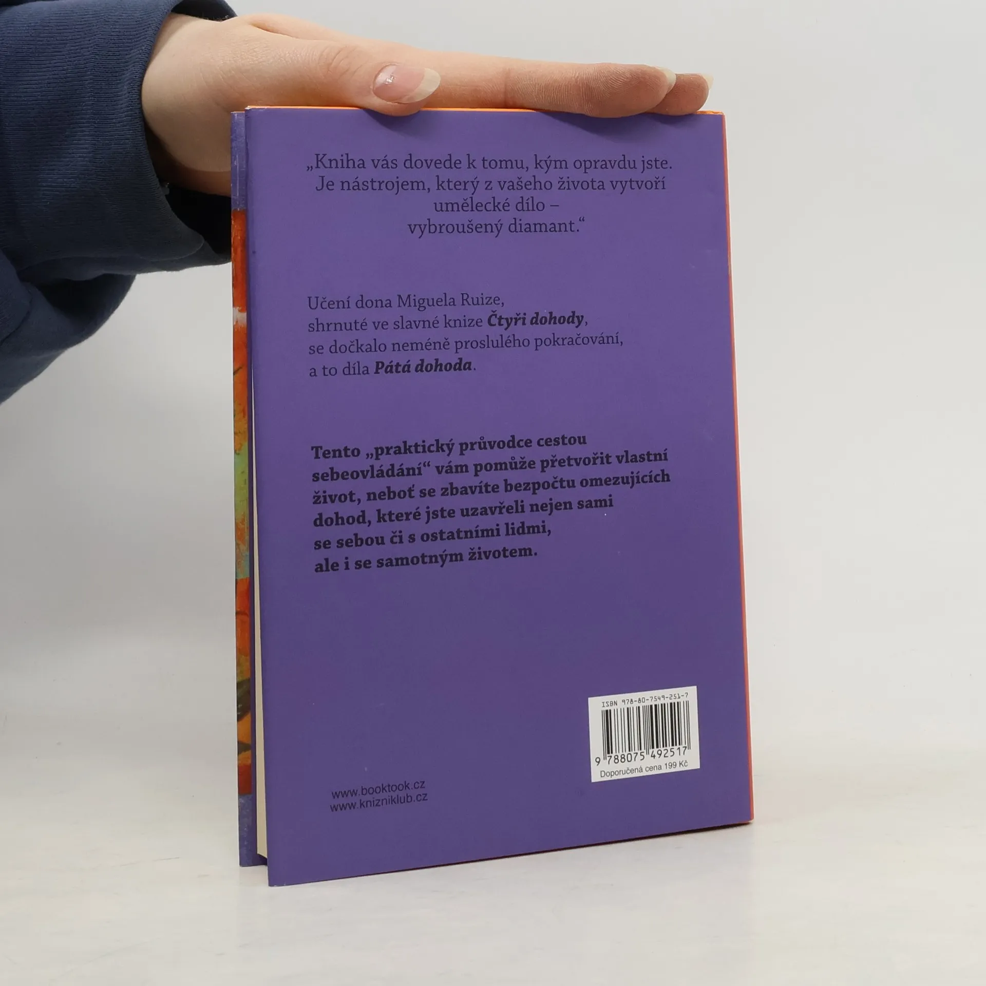 Učení dona Miguela Ruize, shrnuté ve slavné knize Čtyři dohody, se dočkalo neméně proslulého pokračování, a to díla Pátá dohoda. Tento "praktický průvodce cestou sebeovládání" vám pomůže přetvořit vlastní život, neboť se zbavíte bezpočtu omezujících dohod, které jste uzavřeli nejen sami se sebou či s ostatními lidmi, ale i se samotným životem.