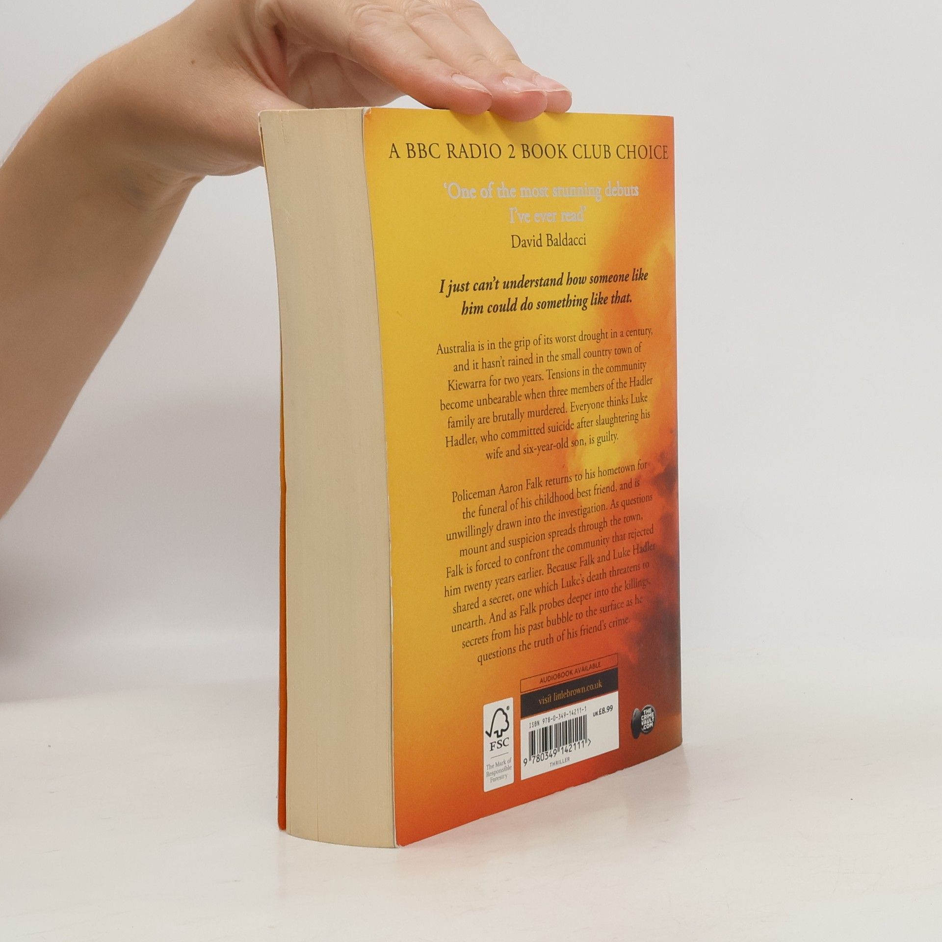 Three members of the Hadler family are brutally murdered. Everyone thinks Luke Hadler, who committed suicide after slaughtering his wife and six-year-old son, is guilty. Policeman Aaron Falk returns to the town of his youth for the funeral of his childhood best friend, and is unwillingly drawn into the investigation. As questions mount and suspicion spreads through the town, Falk is forced to confront the community that rejected him twenty years earlier