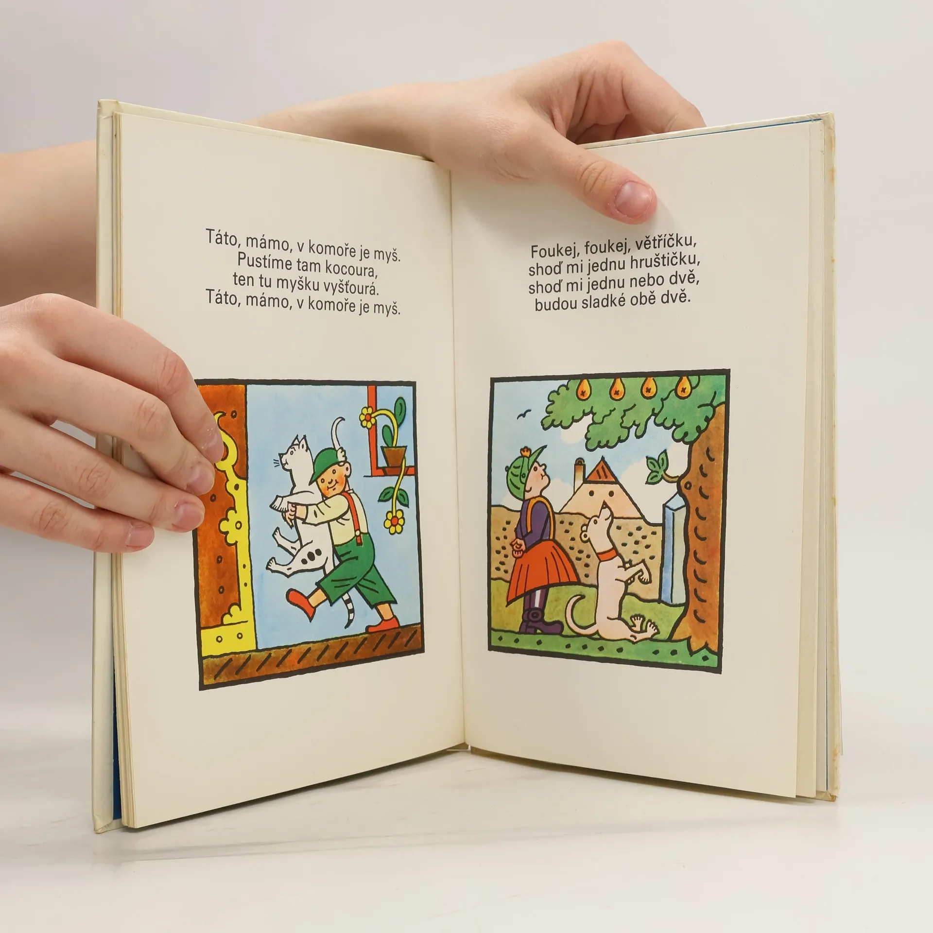 Obrázky, provázené lidovými říkadly a verši, přibližují dětem zábavy zvířátek, různé dětské hry apod.
