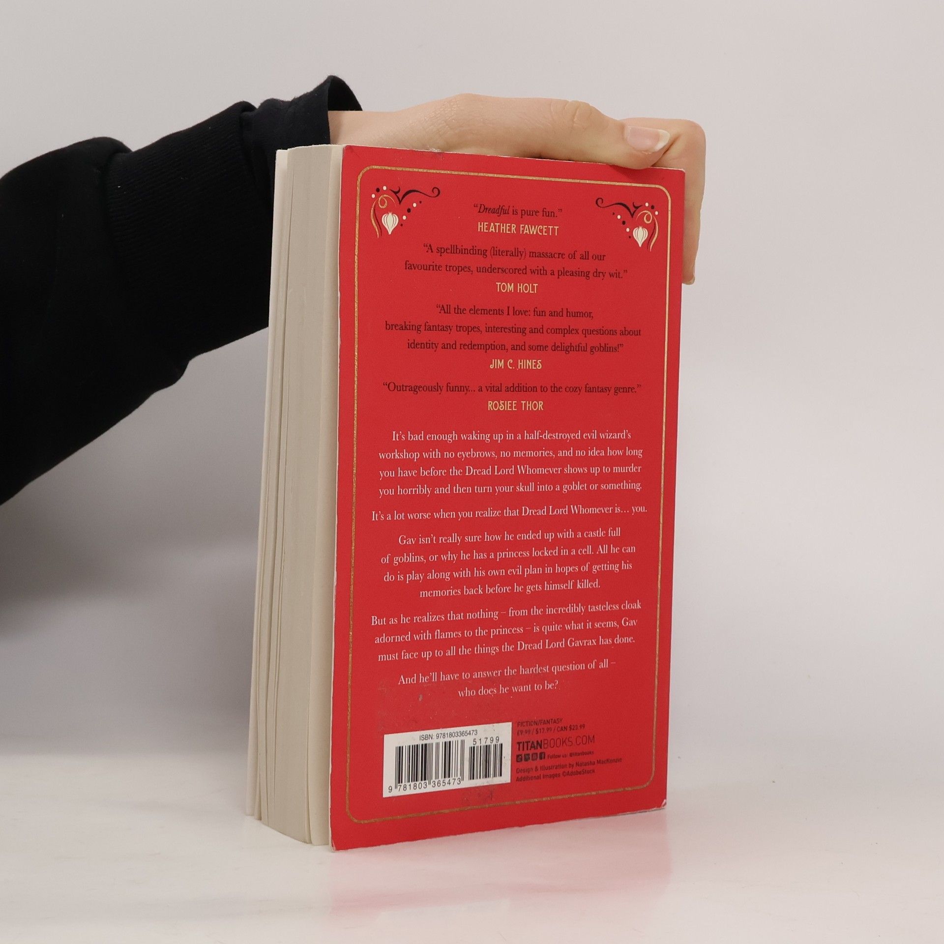 A sharp-witted, high fantasy farce featuring killer moat squid, toxic masculinity, evil wizards and a garlic festival - all at once. Perfect for fans of T. Kingfisher, K. J. Parker and Travis Baldree.It’s bad enough waking up in a half-destroyed evil wizard’s workshop with no eyebrows, no memories, and no idea how long you have before the Dread Lord Whomever shows up to murder you horribly and then turn your skull into a goblet or something.It’s a lot worse when you realize that Dread Lord Whomever is… you.Gav isn’t really sure how he ended up with a castle full of goblins, or why he has a princess locked in a cell. All he can do is play along with his own evil plan in hopes of getting his memories back before he gets himself killed. But as he realizes that nothing – from the incredibly tasteless cloak adorned with flames to the aforementioned princess – is quite what it seems, Gav must face up to all the things the Dread Lord Gavrax has done. And he’ll have to answer the hardest question of all – who does he want to be?Dread Lord Gavrax has had better weeks.