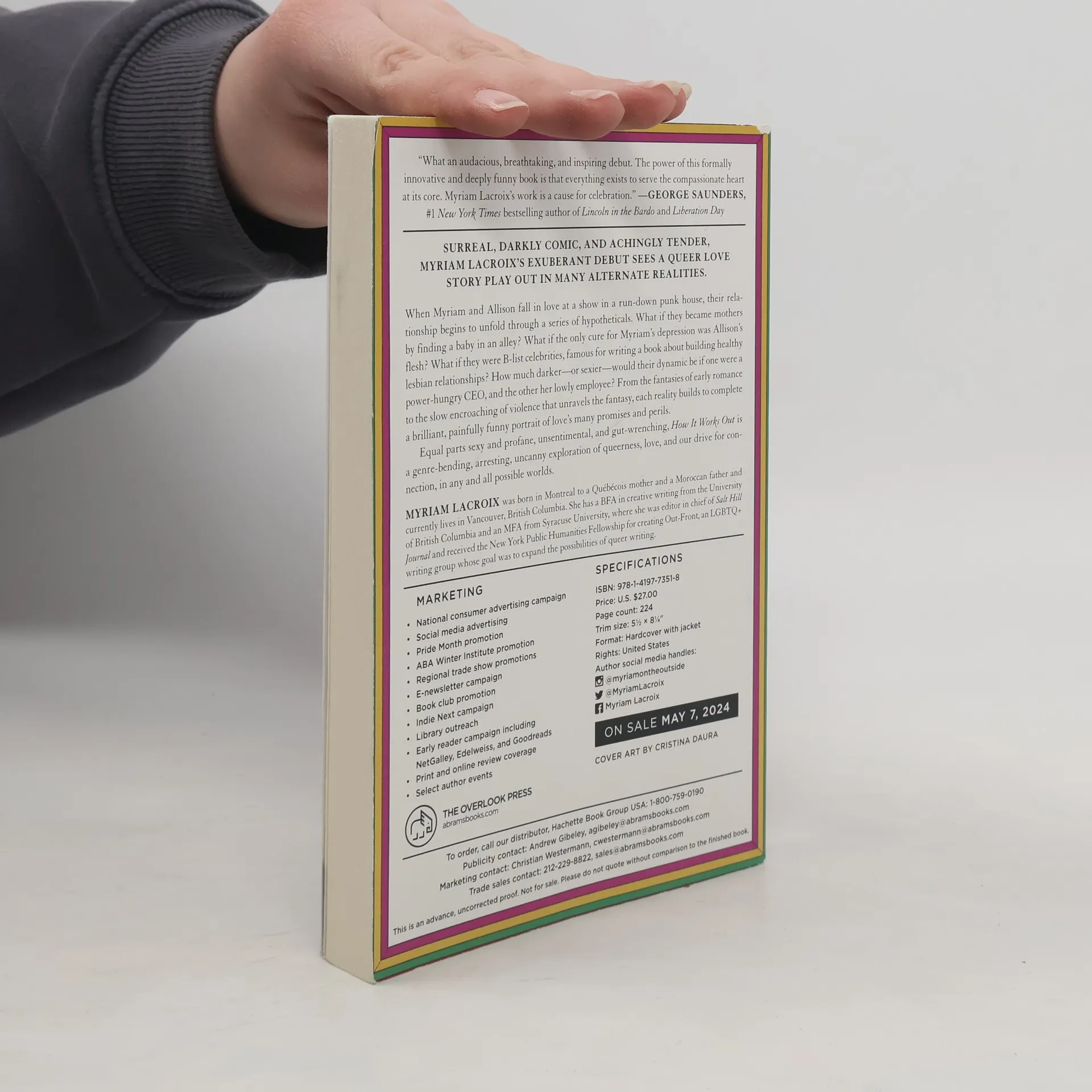 "Audacious, breathtaking, and inspiring." --GEORGE SAUNDERS "Madcap, delirious, exhilaratingly good." --KELLY LINK "A delightfully bizarre and unabashedly queer revelation." --TEGAN and SARA QUIN "A beautifully brilliant, hilariously sad stunner of a debut that never forgets about the heart." --NANA KWAME ADJEI-BRENYAH What if you had the chance to rewrite the course of your relationship, again and again, in the hopes that it would work out? When Myriam and Allison fall in love at a show in a run-down punk house, their relationship begins to unfold through a series of hypotheticals. What if they became mothers by finding a baby in an alley? What if the only cure for Myriam's depression was Allison's flesh? What if they were B-list celebrities, famous for writing a book about building healthy lesbian relationships? How much darker--or sexier--would their dynamic be if one were a power-hungry CEO, and the other her lowly employee? From the fantasies of early romance to the slow encroaching of violence that unravels the fantasy, each reality builds to complete a brilliant, painfully funny portrait of love's many promises and perils. Equal parts sexy and profane, unsentimental, and gut-wrenching, How It Works Out is a genre-bending, arresting, uncanny exploration of queerness, love, and our drive for connection, in any and all possible worlds.