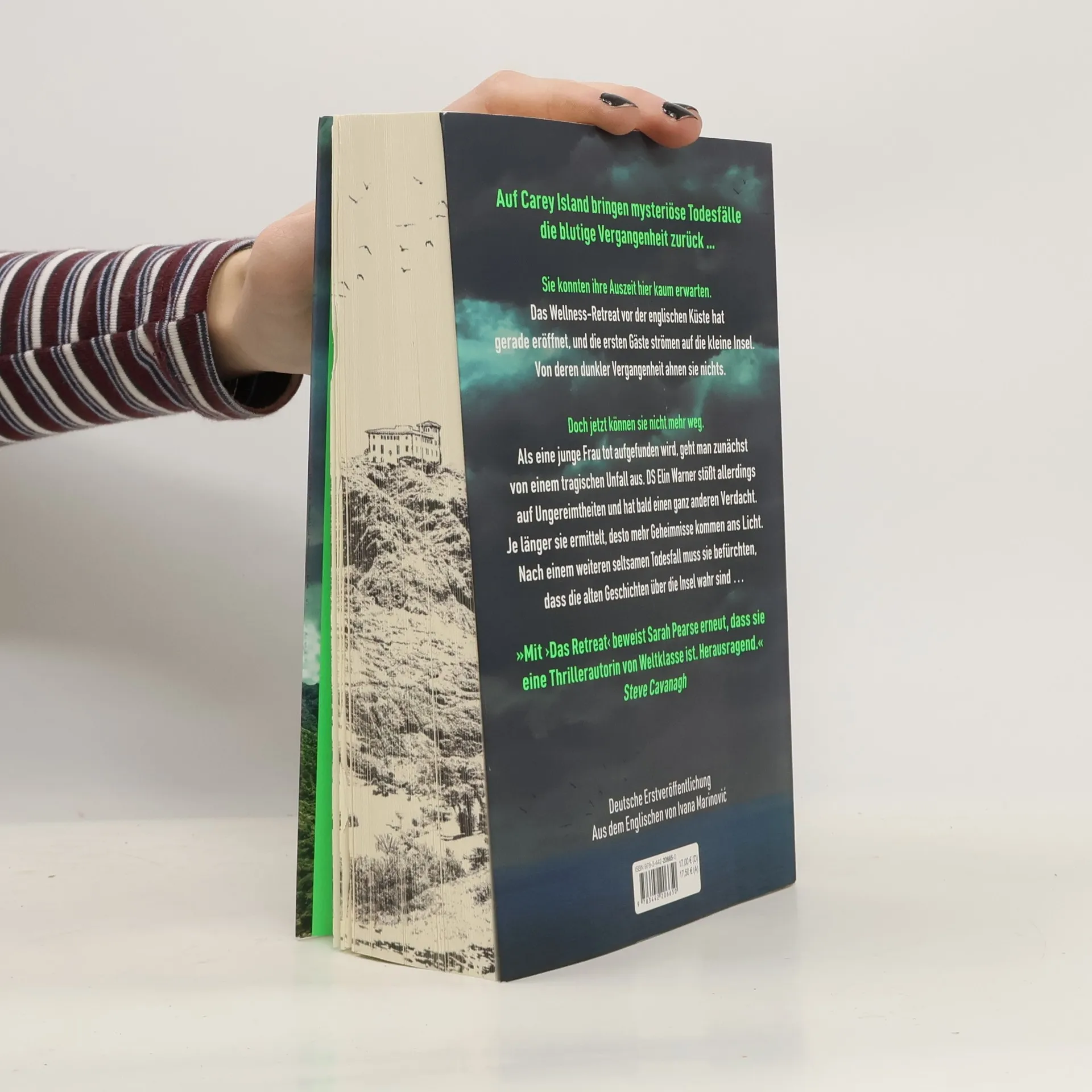 Es ist der perfekte Ort, um der Welt zu entfliehen. Oder zu sterben ... Von der Autorin des SPIEGEL-Bestsellers »Das Sanatorium«. Die Einheimischen nennen die Insel Reaper's Rock – Fels des Sensenmanns. Vor Jahren hatte hier ein Serienkiller eine Gruppe Jugendlicher getötet, und man munkelt, der Ort sei verflucht. Nun wurde hier vor der malerischen Küste Devons ein Öko-Wellness-Retreat eröffnet, das Ruhe und Entspannung verspricht. Nichts deutet noch auf die dunkle Vergangenheit. Bis die Leiche einer jungen Frau auf den Felsen unterhalb des Yoga-Pavillons gefunden wird. Ein Unfall? Doch das Opfer war kein Gast, sie sollte eigentlich gar nicht auf der Insel sein, wie DS Elin Warner erfährt. Am nächsten Tag ertrinkt ein Mann bei einem Tauchunfall, und Elin ahnt, dass es sich nicht um Zufälle handelt. Sie muss den Mörder finden, bevor sich die tödliche Geschichte der Insel wiederholt ... Dieses Buch gibt es in zwei Versionen: mit und ohne farbigem Buchschnitt. Es wird je nach Verfügbarkeit geliefert. »Mit ›Das Retreat‹ beweist Sarah Pearse erneut, dass sie eine Thrillerautorin von Weltklasse ist. Herausragend.« Steve Cavanagh