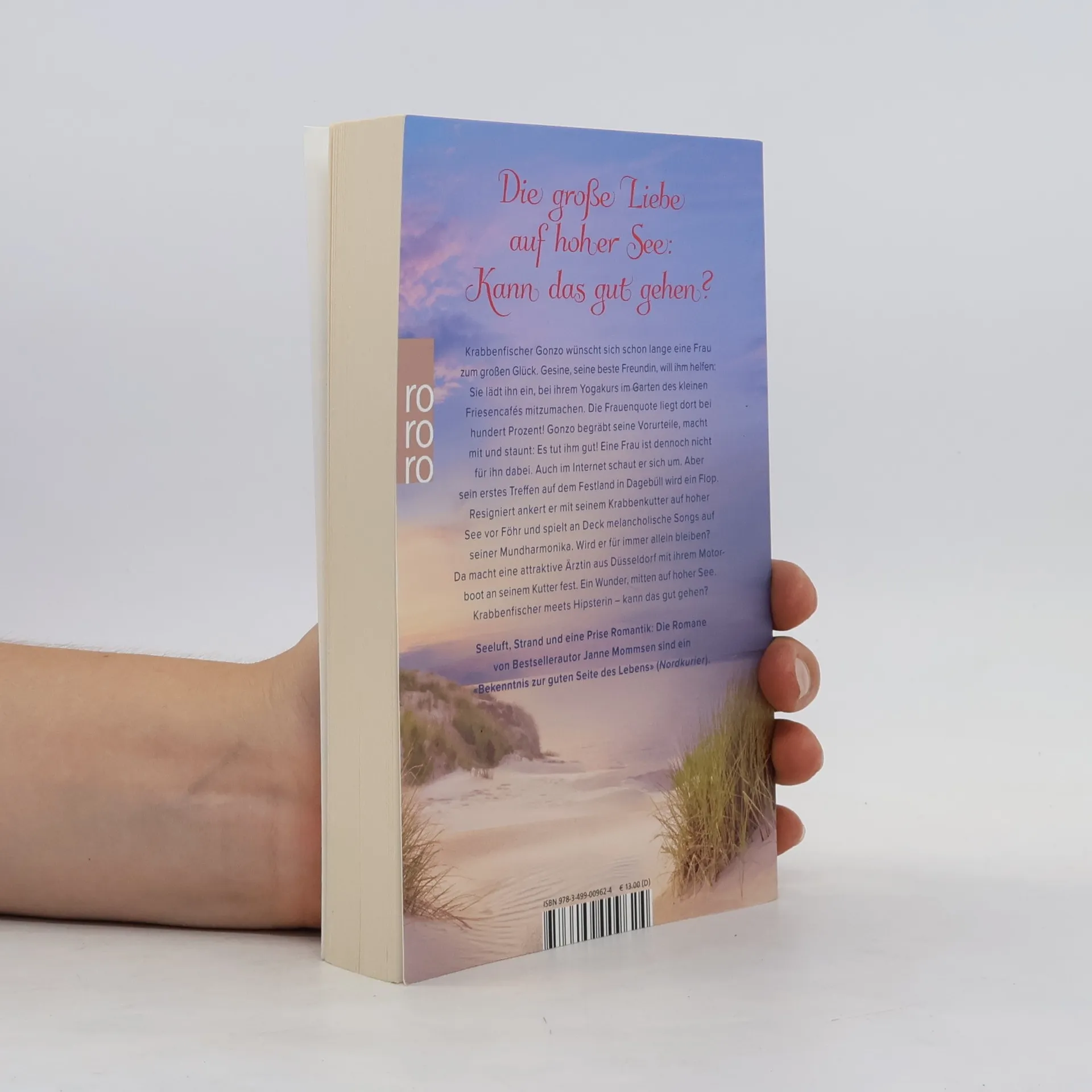 Die große Liebe auf hoher See: Kann das gut gehen? Der neue Band der Bestsellerreihe «Das kleine Friesencafé». Krabbenfischer Gonzo wünscht sich schon lange eine Frau zum großen Glück. Gesine, seine beste Freundin, will ihm helfen: Sie lädt ihn ein, bei ihrem Yogakurs im Garten des kleinen Friesencafés mitzumachen. Die Frauenquote liegt dort bei hundert Prozent! Gonzo begräbt seine Vorurteile, macht mit und staunt: Es tut ihm gut! Eine Frau ist dennoch nicht für ihn dabei. Auch im Internet schaut er sich um. Aber sein erstes Treffen auf dem Festland in Dagebüll wird ein Flopp. Resigniert ankert er mit seinem Krabbenkutter auf hoher See vor Föhr und spielt an Deck melancholische Songs auf seiner Gitarre. Wird er für immer allein bleiben? Da macht eine attraktive Ärztin aus Düsseldorf mit ihrer Motoryacht an seinem Kutter fest. Ein Wunder, mitten auf hoher See. Krabbenfischer meets Hipster – kann das gut gehen?
