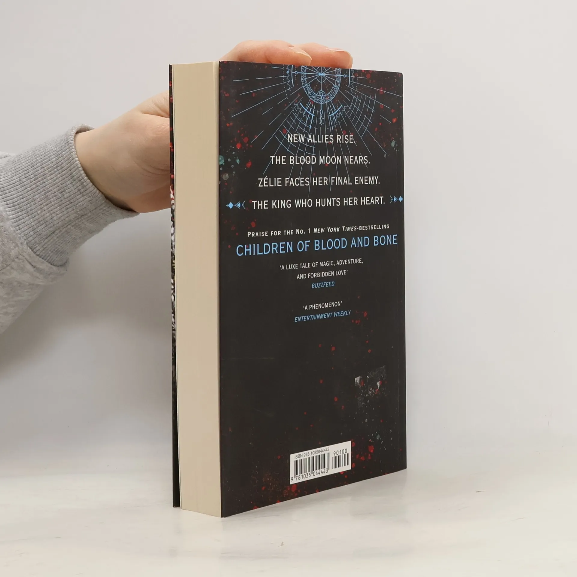 New allies rise.The Blood Moon nears.Zelie faces her final enemy.The king who hunts her heart.When Zelie seized the royal palace that fateful night, she thought her battles had come to an end. The monarchy had finally fallen. The maji had risen again. Zelie never expected to find herself locked in a cage and trapped on a foreign ship. Now warriors with iron skulls traffick her and her people across the seas, far from their homeland.Then everything changes when Zelie meets King Baldyr, her true captor and the man who has ravaged entire civilizations to find her. The ruler of the Skulls, Baldyr's quest to harness Zelie's strength sends Zelie, Amari, and Tzain searching for allies in foreign lands.But as Baldyr closes in, catastrophe charges Orisha's shores. It will take everything Zelie has to face her final enemy and save her people before the Skulls annihilate them for good.