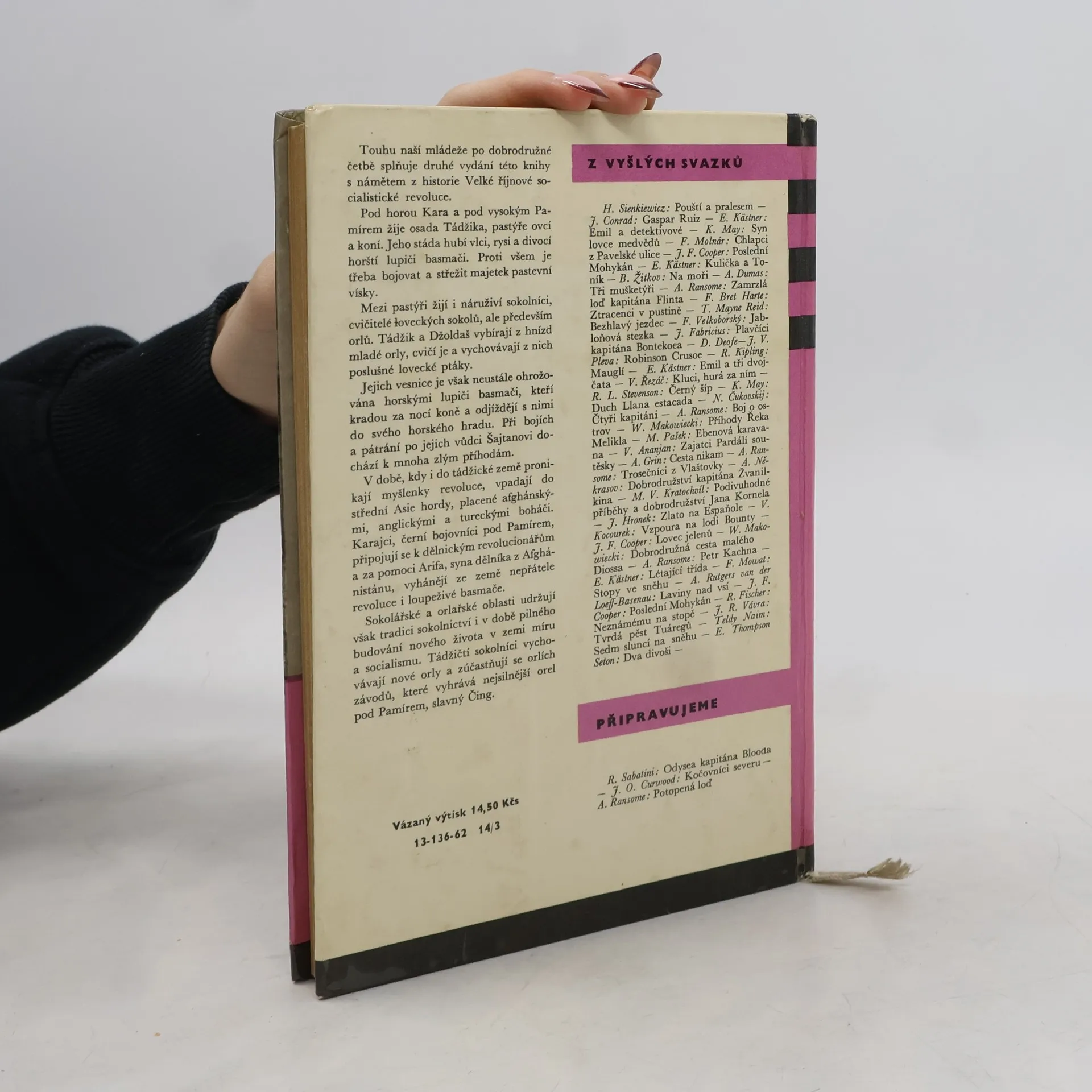 Touhu naší mládeže po dobrodružné četbě splňuje druhé vydání této knihy s námětem z historie Velké říjnové socialistické revoluce. Pod horou Kara a pod vysokým Pamírem žije osada Tádžika, pastýře ovcí a koní. Jeho stáda hubí vlci, rysi a divocí horští lupiči basmači. Proti všem je třeba bojovat a střežit majetek pastevní vísky. Mezi pastýři žijí i náruživí sokolníci, cvičitelé loveckých sokolů, ale především orlů. Tádžik a Džoldaš vybírají z hnízd mladé orly, cvičí je a vychovávají z nich poslušné lovecké ptáky. Jejich vesnice je však neustále ohrožována horskými lupiči basmači, kteří kradou za nocí koně a odjíždějí s nimi do svého horského hradu. Při bojích a pátrání po jejich vůdci Šajtanovi dochází k mnoha zlým příhodám. V době, kdy i do tádžické země pronikají myšlenky revoluce, vpadají do střední Asie hordy, placené afghánskými, anglickými a tureckými boháči. Karajci, černí bojovníci pod Pamírem, připojuji se k dělnickým revolucionářům a za pomoci Arifa, syna dělníka z Afghánistánu, vyhánějí ze země nepřátele revoluce i loupeživé basmače. Sokolářské a orlařské oblasti udržují však tradici sokolnictví i v době pilného budování nového života v zemi míru a socialismu. Tádžičti sokolníci vychovávají nové orly a zúčastňují se orlích závodů, které vyhrává nejsilnější orel pod Pamírem, slavný Čing.