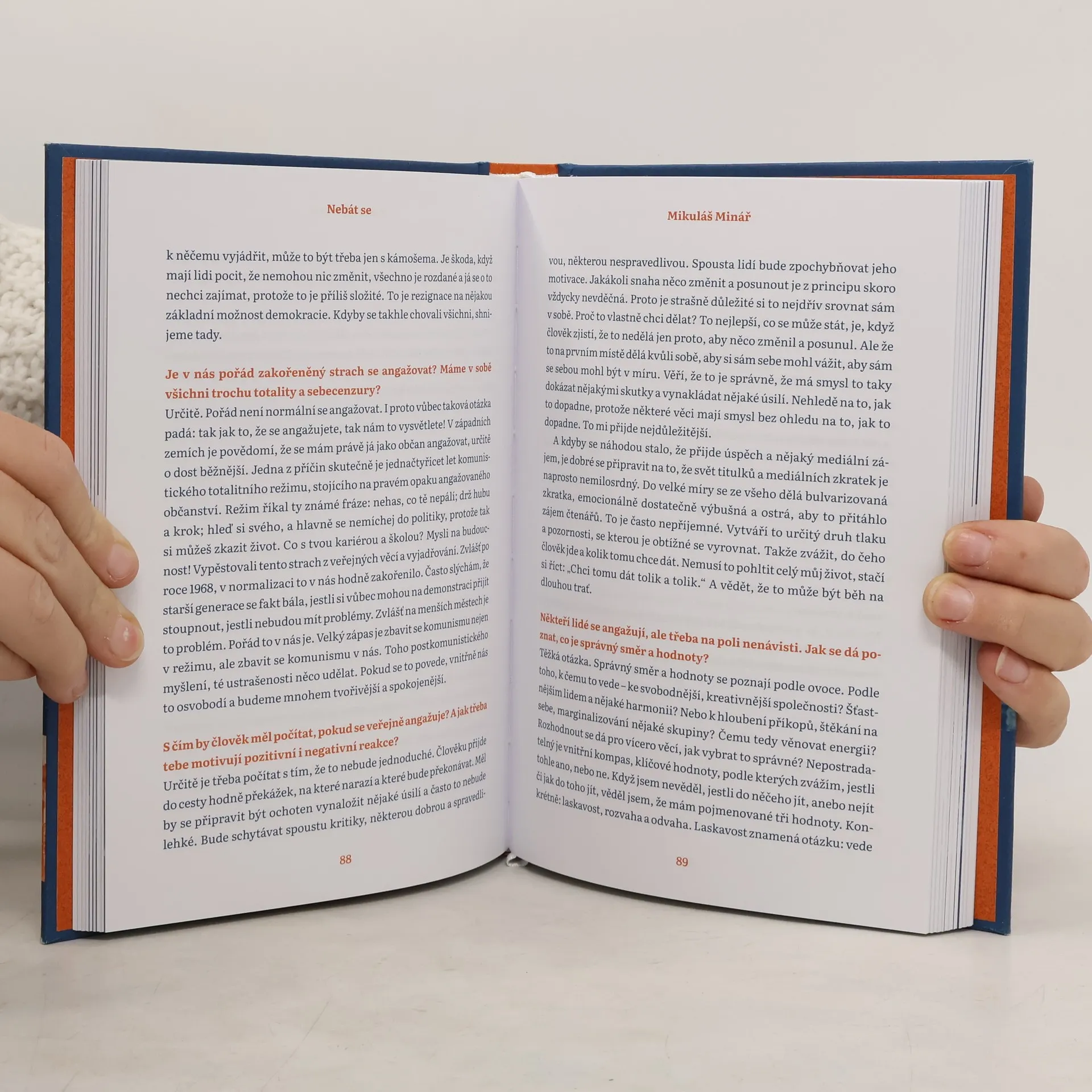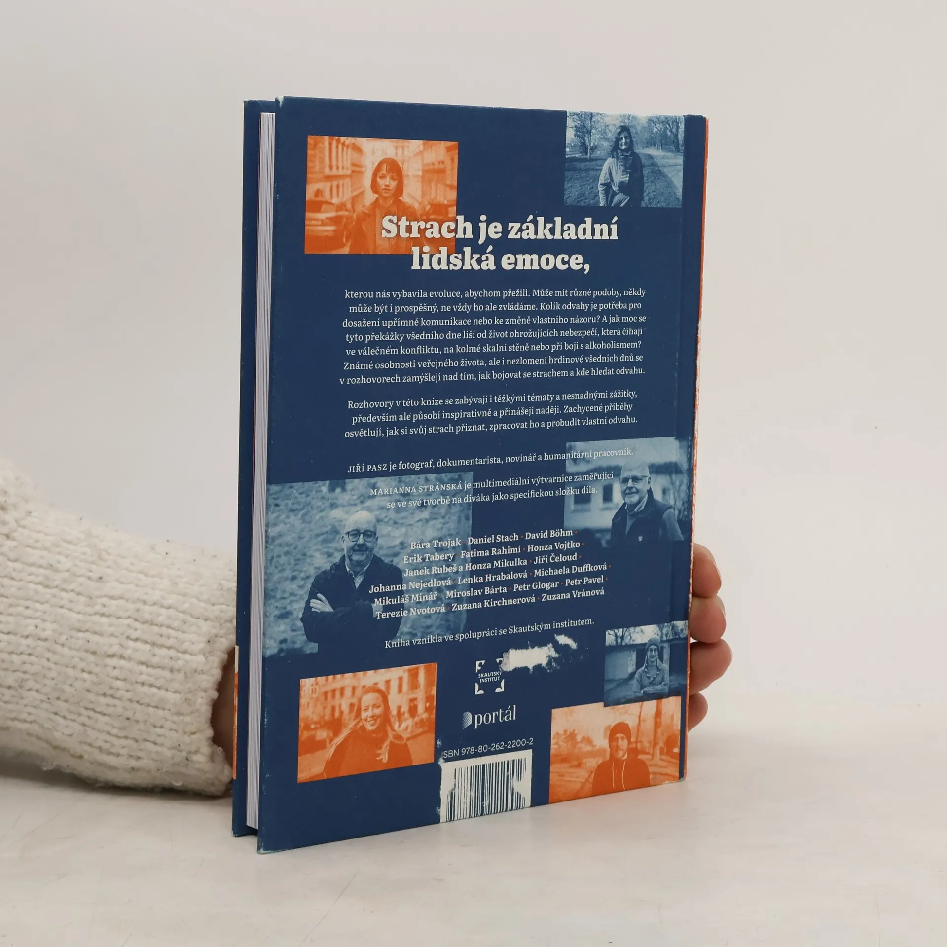 Strach je základní lidská emoce, kterou nás vybavila evoluce, abychom přežili. Může mít různé podoby od obav, přes hrůzu až po panické zděšení. Ne vždy je ale strach prospěšný, a ne vždy ho zvládáme. Kolik odvahy je potřeba pro dosažení upřímné komunikace nebo ke změně vlastního názoru? K dosažení blízkosti či přijetí odloučení? A jak moc se tyto překážky všedního dne liší od život ohrožujících nebezpečí, které číhají ve válečném konfliktu, na kolmé skalní stěně nebo při boji s alkoholismem? Známé osobnosti veřejného života, ale i nezlomení hrdinové všedních dnů se v rozhovorech zamýšlí nad tím, jak bojovat se strachem a kde hledat odvahu. Příběhy rozhovorů se zabývají i těžkými tématy a nesnadnými zážitky, primárně ale působí nadějeplně a inspirativně. Zachycené osudy osvětlují cestu k tomu si svůj strach přiznat, zpracovat ho a probudit vlastní odvahu. Jiří Pasz je fotograf, dokumentarista, novinář a humanitární pracovník. Marianna Stránská je multimediální výtvarnice zaměřující se ve své tvorbě na diváka jako specifickou složku díla.