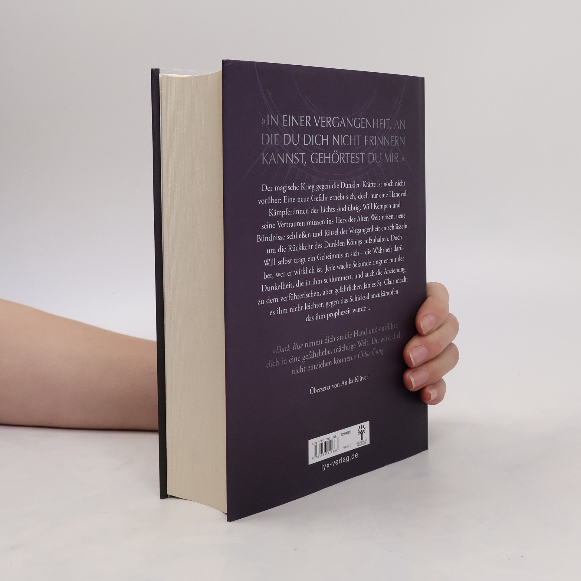 »In einer Vergangenheit, an die du dich nicht erinnern kannst, gehörtest du mir.« Der magische Krieg gegen die Dunklen Kräfte ist noch nicht vorüber: Eine neue Gefahr erhebt sich, doch nur eine Handvoll Kämpfer:innen des Lichts sind übrig. Will Kempen und seine Vertrauten müssen ins Herz der Alten Welt reisen, neue Bündnisse schließen und Rätsel der Vergangenheit entschlüsseln, um die Rückkehr des Dunklen Königs aufzuhalten. Doch Will selbst trägt ein Geheimnis in sich - die Wahrheit darüber, wer er wirklich ist. Jede wache Sekunde ringt er mit der Dunkelheit, die in ihm schlummert, und auch die Anziehung zu dem verführerischen, aber gefährlichen James St. Clair macht es ihm nicht leichter, gegen das Schicksal anzukämpfen, das ihm prophezeit wurde ... »DARK RISE nimmt dich an die Hand und entführt dich in eine gefährliche, mächtige Welt. Du wirst dich nicht entziehen können.« CHLOE GONG Zweiter Band der DARK-RISE-Trilogie