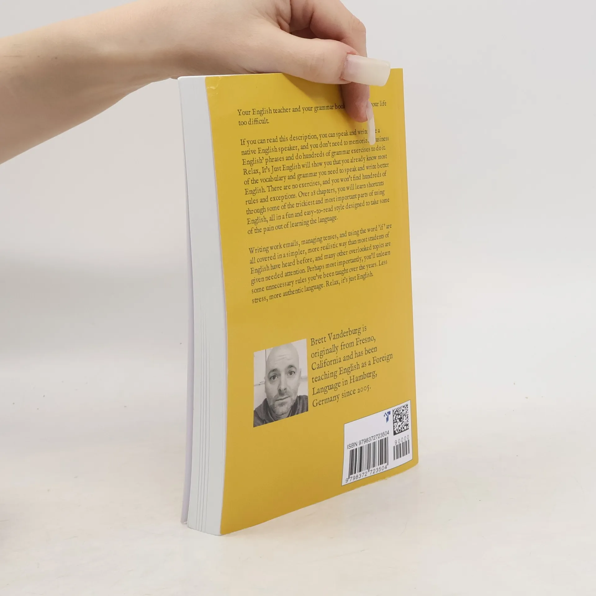 Nobody ever got good at English by doing gap-fill exercises. 'Business English' is just a marketing term. Books and dictionaries teach you words nobody uses. 'If' is just a regular word with no special grammar. Your English teacher and your grammar book are making your life too difficult. If you can read this description, you can speak and write like a native English speaker, and you don't need to memorize 'Business English' phrases and do hundreds of grammar exercises to do it. Relax, It's Just English will show you that you already know most of the vocabulary and grammar you need to speak and write better English. There are no exercises, and you won't find hundreds of rules and exceptions. Over 28 chapters, you will learn shortcuts through some of the trickiest and most important parts of using English, all in a fun and easy-to-read style designed to take some of the pain out of learning the language. Writing work emails, managing tenses, and using the word 'if' are all covered in a simpler, more realistic way than most students of English have heard before, and many other overlooked topics are given needed attention. Perhaps most importantly, you'll unlearn some unnecessary rules you've been taught over the years. Less stress, more authentic language. Relax, it's just English. About the Author Brett Vanderburg was born in Fresno, California and has been teaching English as a Foreign Language in Hamburg, Germany since 2005.
